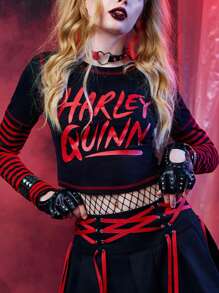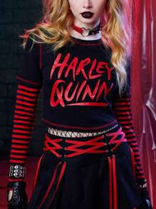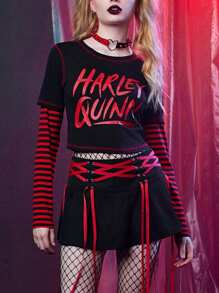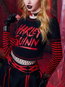 Harley Quinn | ROMWE Striped & Letter Graphic Crop Tee