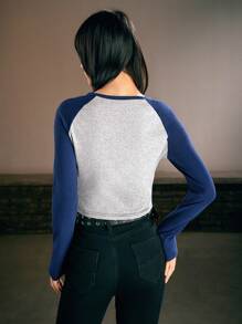 Harry Potter | ROMWE Contrast Raglan Sleeve Notched Neck Crop T-Shirt