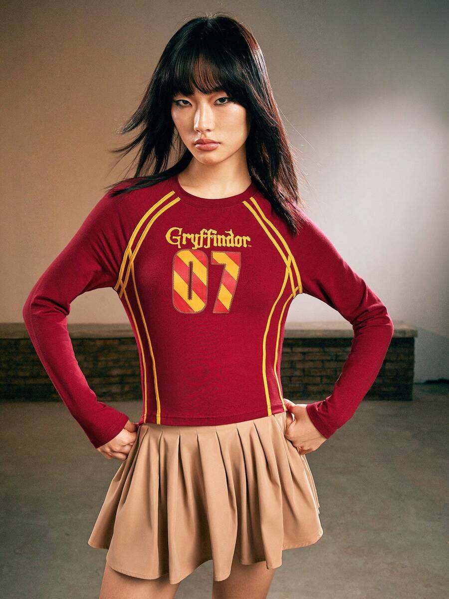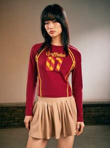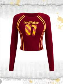 Harry Potter | ROMWE Women's Raglan Sleeve T-shirt With Letter Print