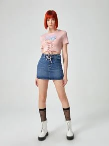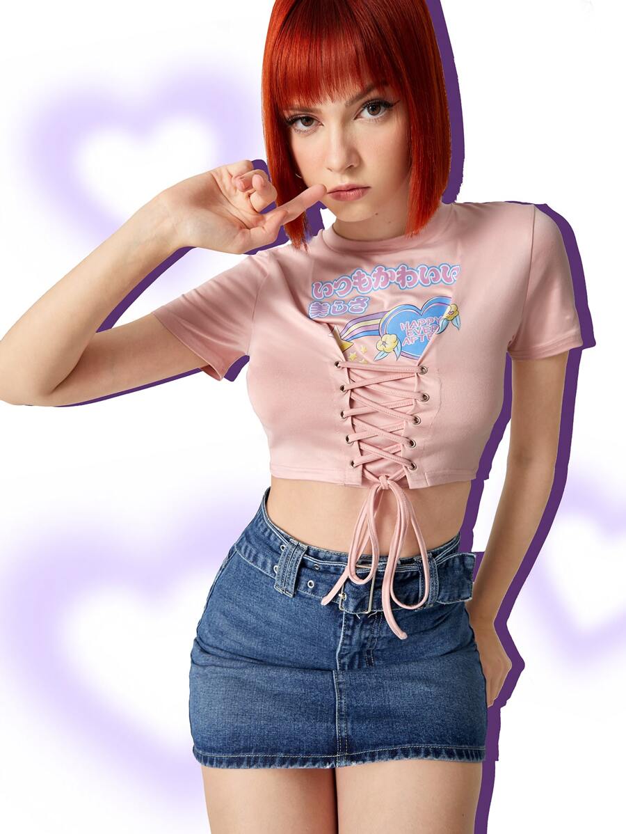 Heart Graphic Lace Up Tee