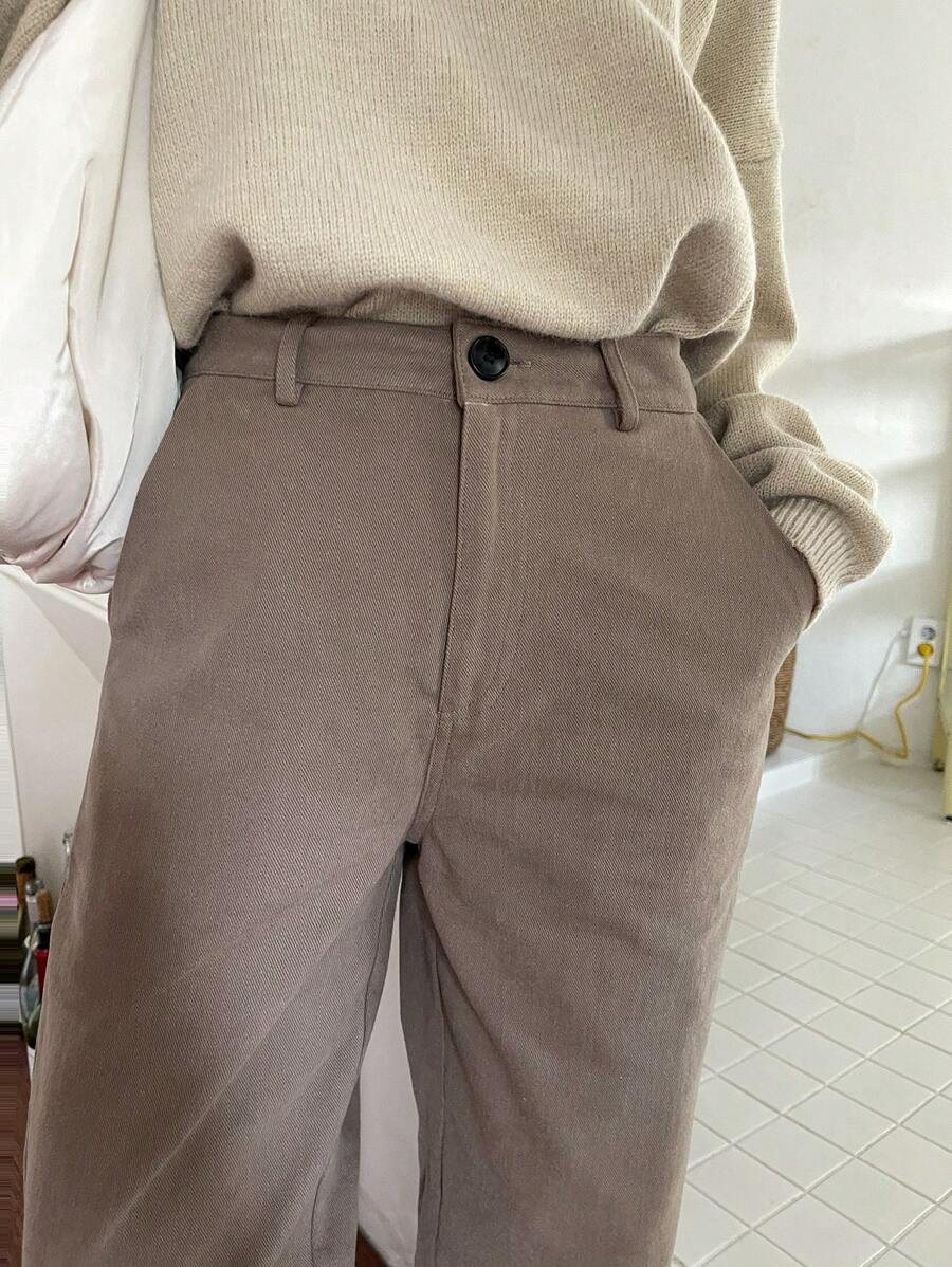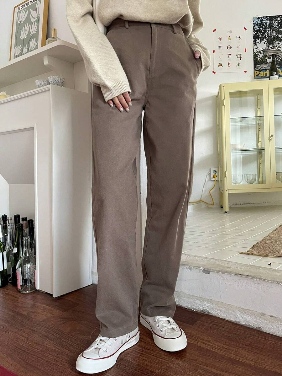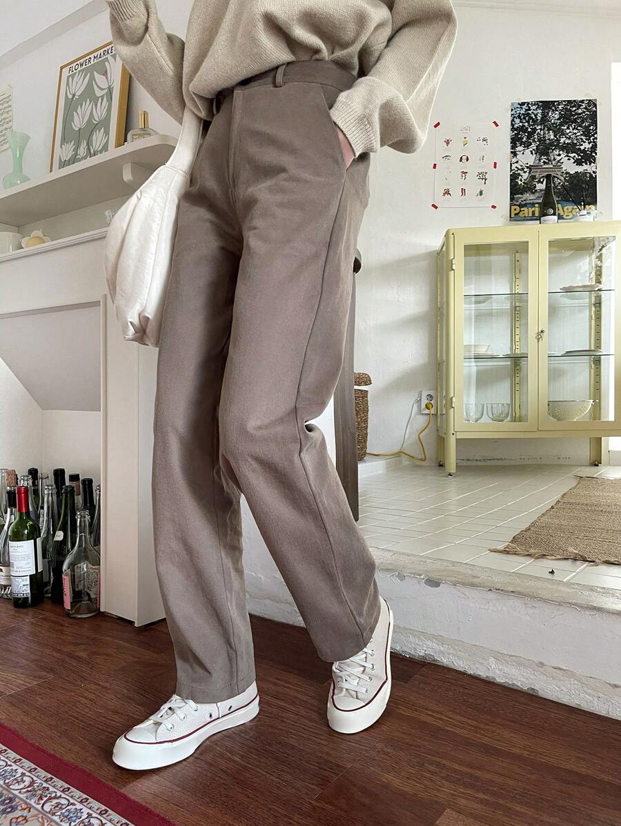 High Waist Slant Pocket Straight Leg Trousers