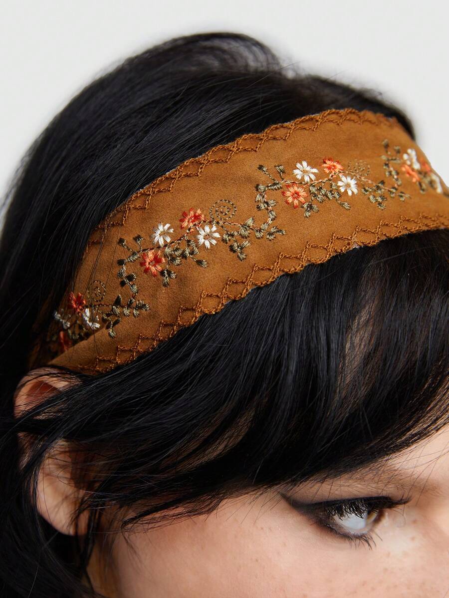 Hippie 1pc Women's Floral Embroidery Headband, Country Style