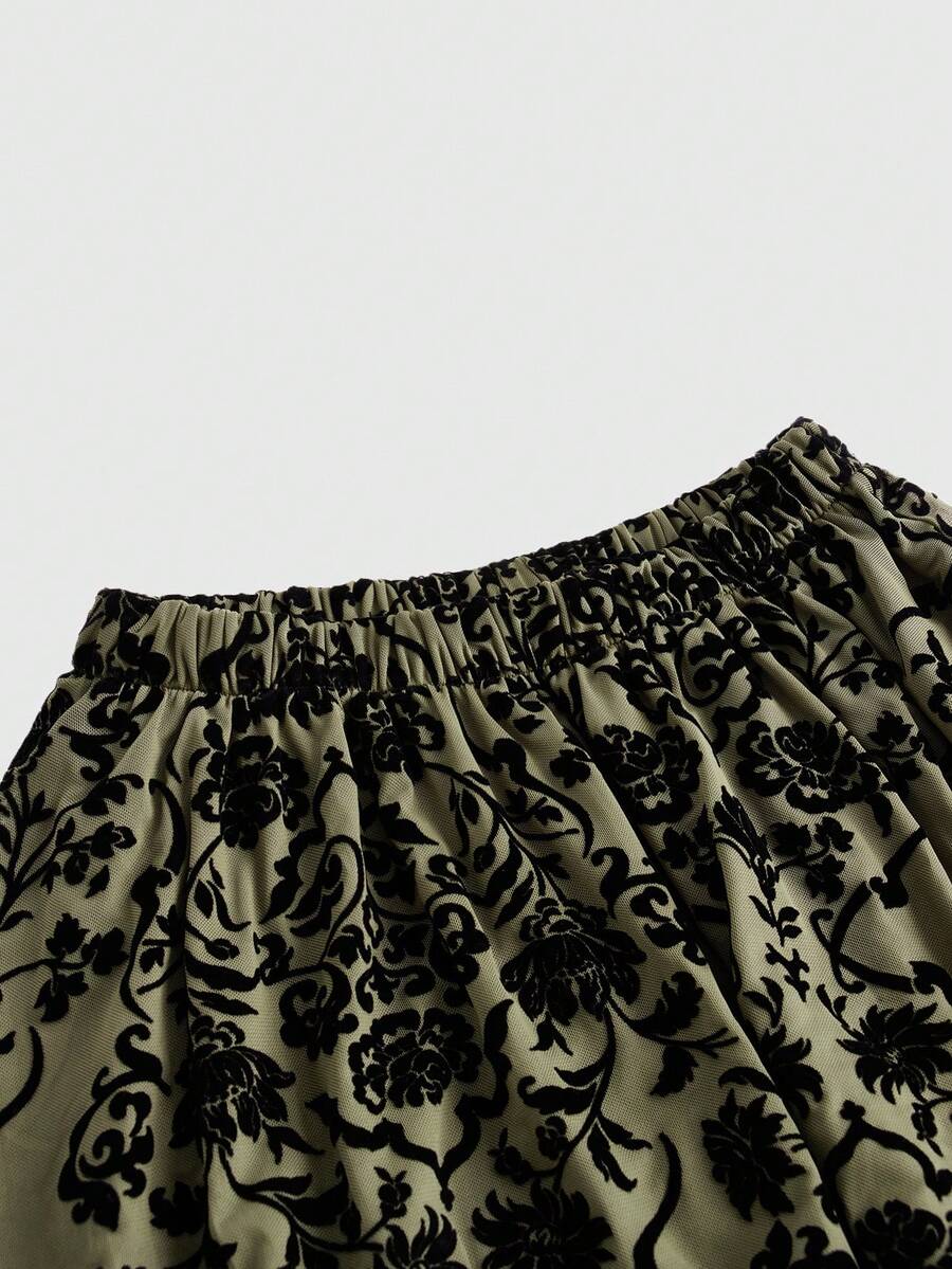 Hippie Baroque Print Contrast Lace Hanky Hem Skirt