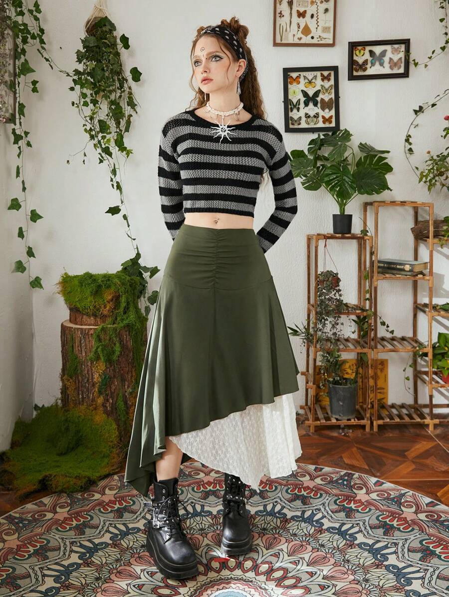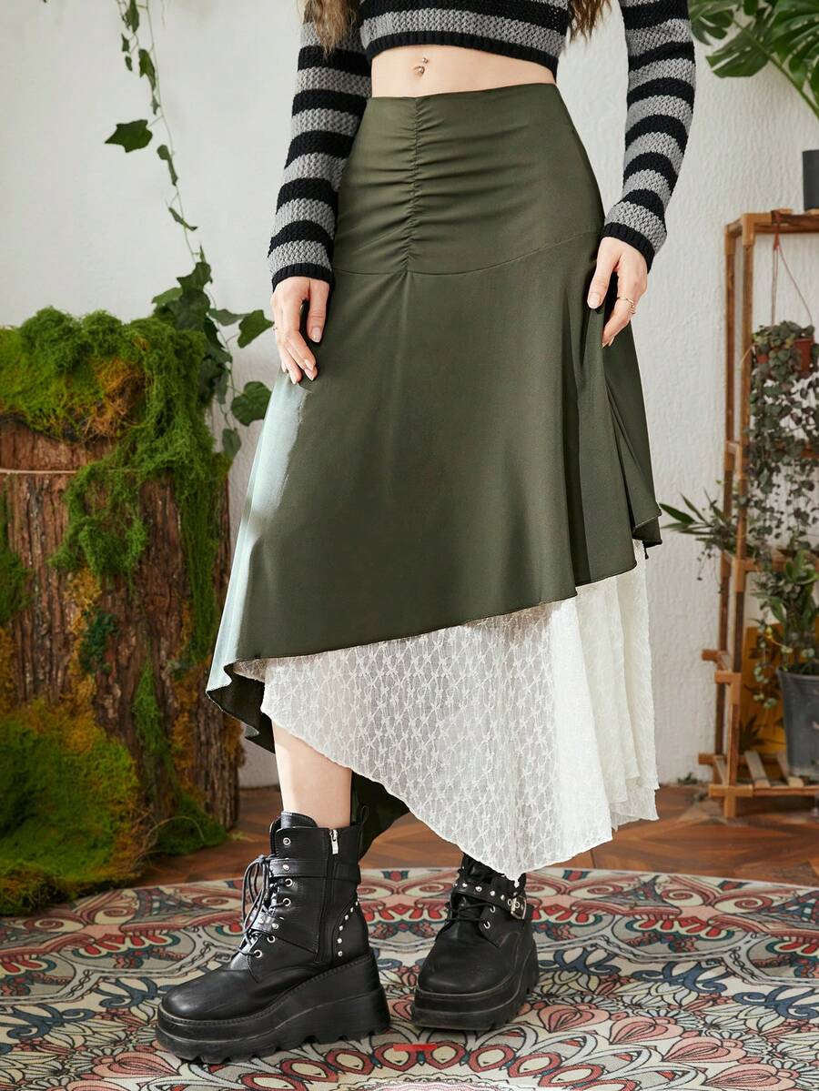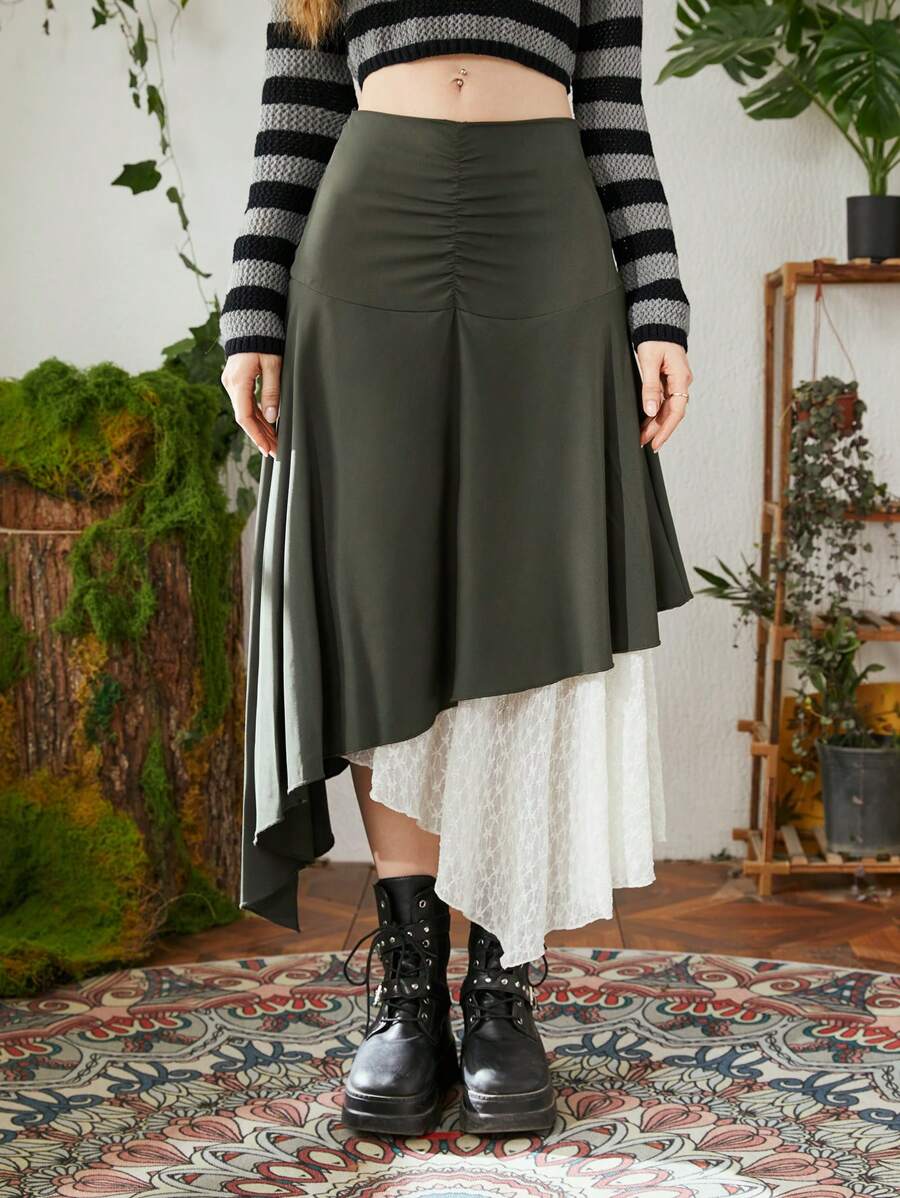Hippie Colourblock Ruched Asymmetrical Hem Skirt