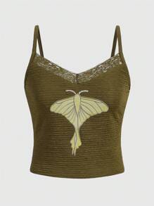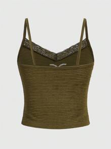 Hippie Fish Tail Embroidery Contrast Lace Cami Top