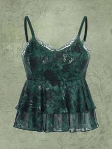 Hippie Floral Print Contrast Lace Cami Top