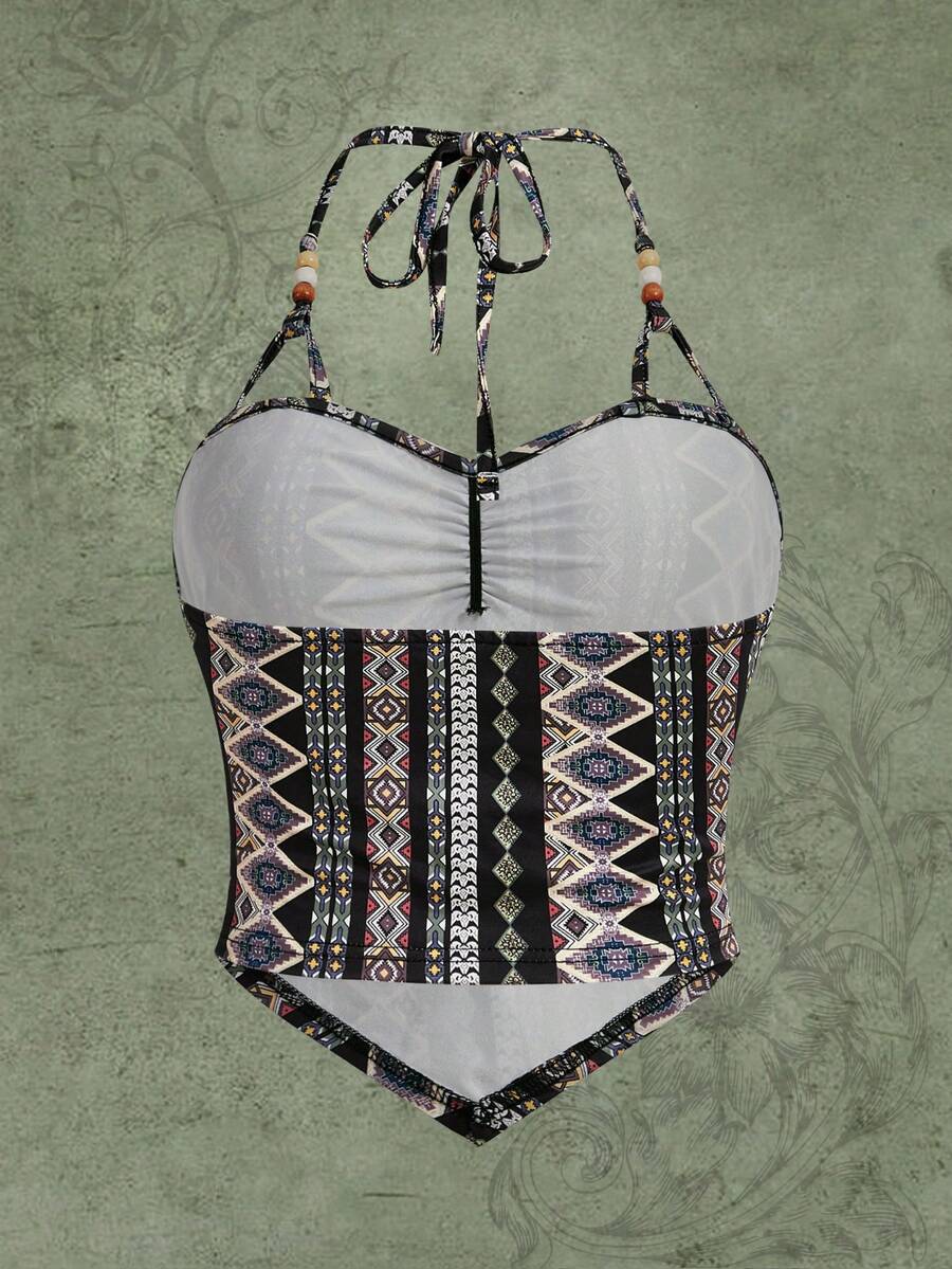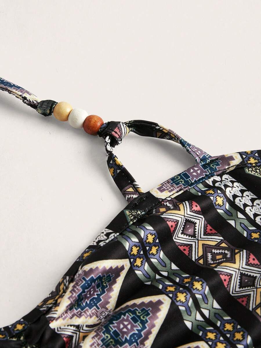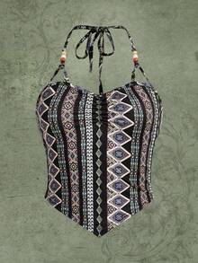 Hippie Geo Print Hanky Hem Halter Top