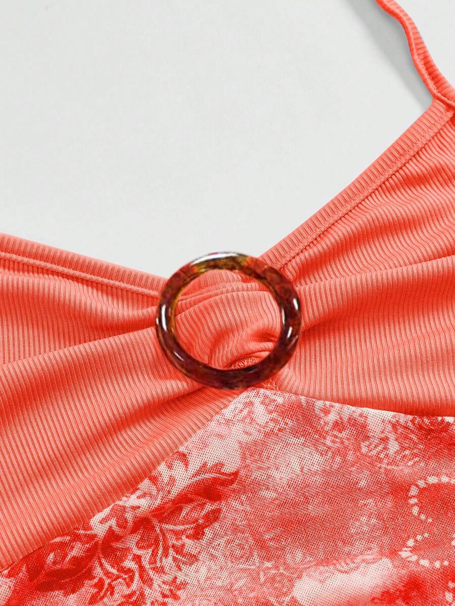 Hippie Summer Casual Printed Asymmetric Hem Halter Neck Top