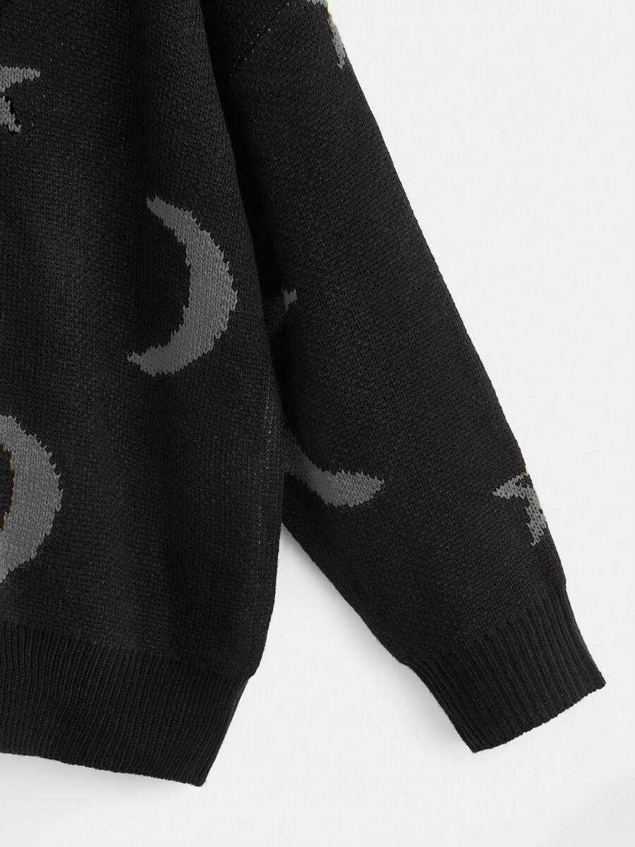Hippie Women'S Loose Fit Drop Shoulder Casual Sweater With Moon & Stars Pattern