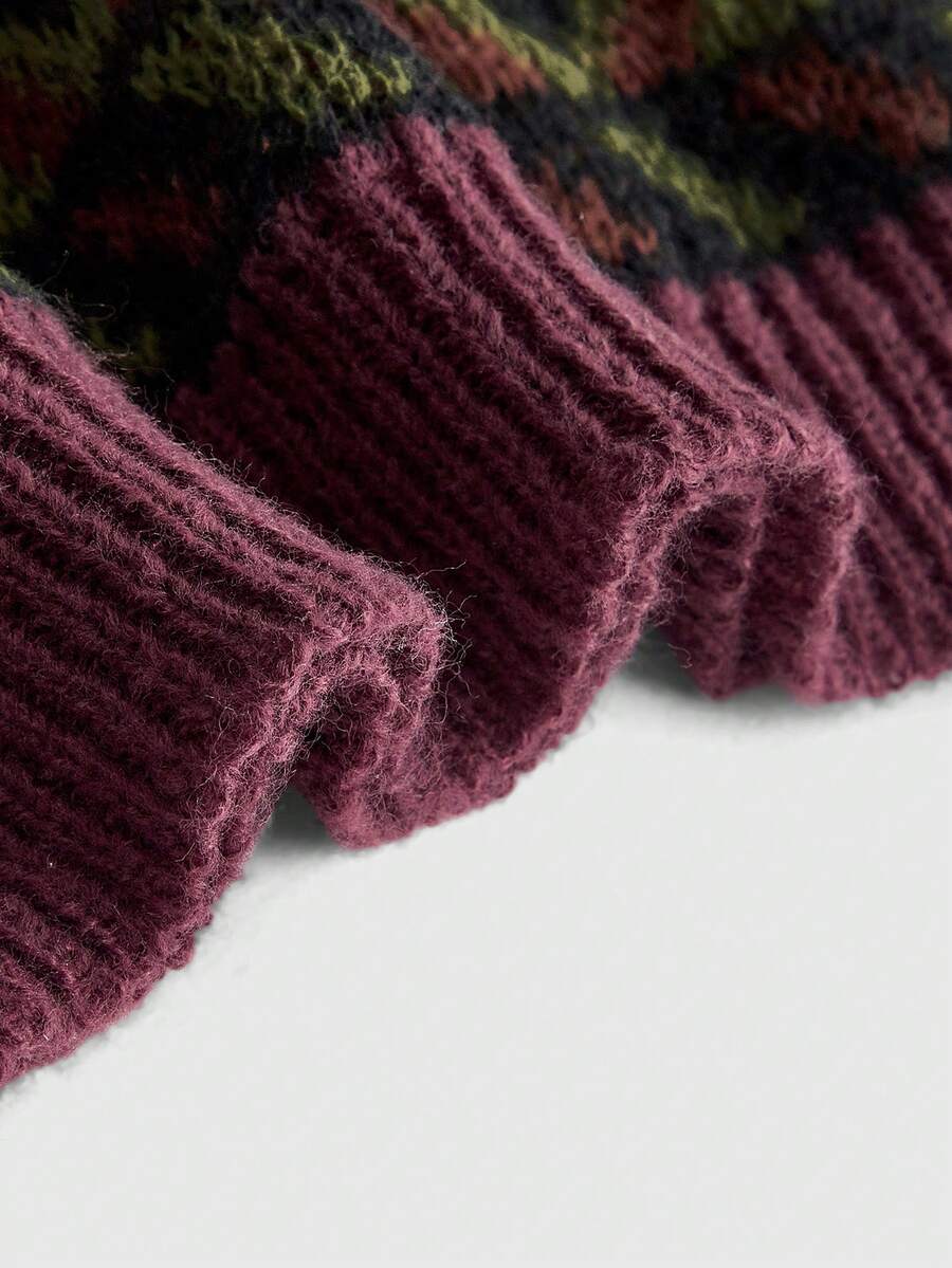 Hippie Women's Geometric Pattern Boat Neck Pullover Sweater