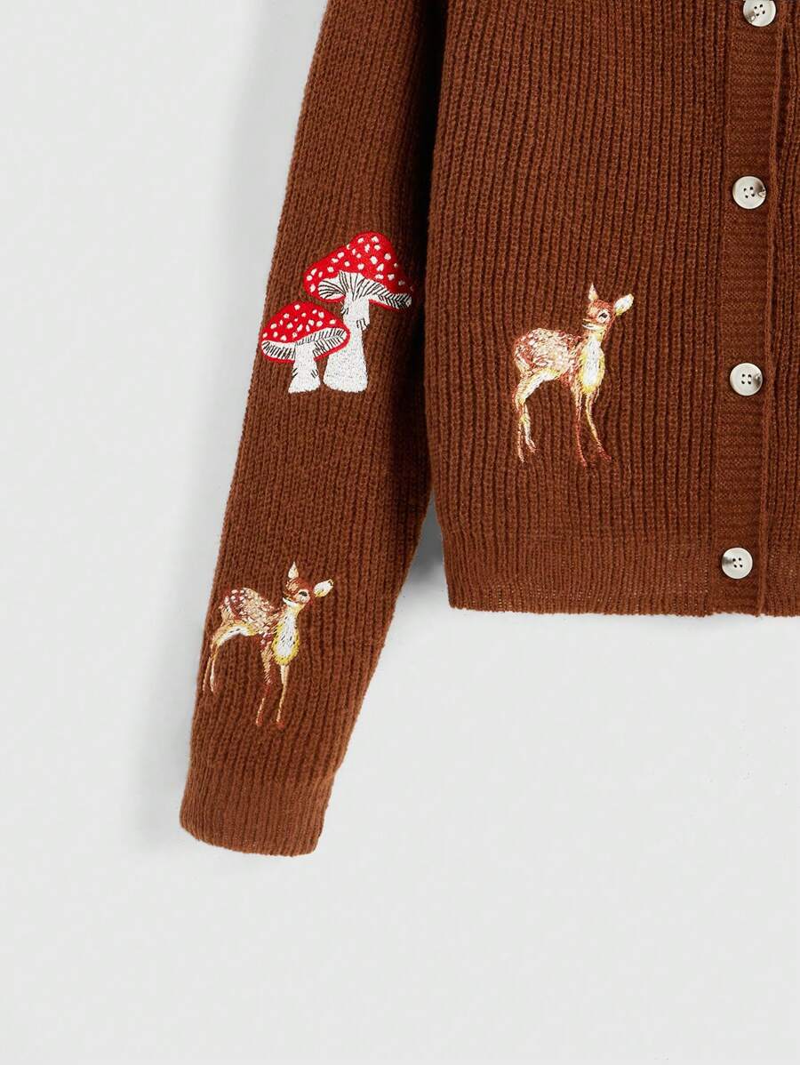Hippie Women's Mushroom, Butterfly And Deer Embroidery Cardigan