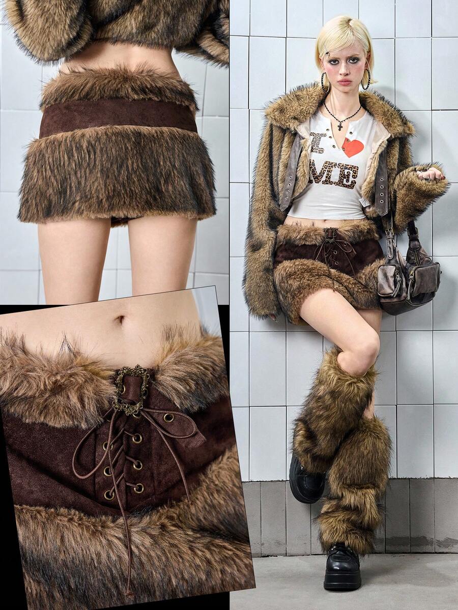 Hippie Women's Retro Fuzzy Drawstring Skirt