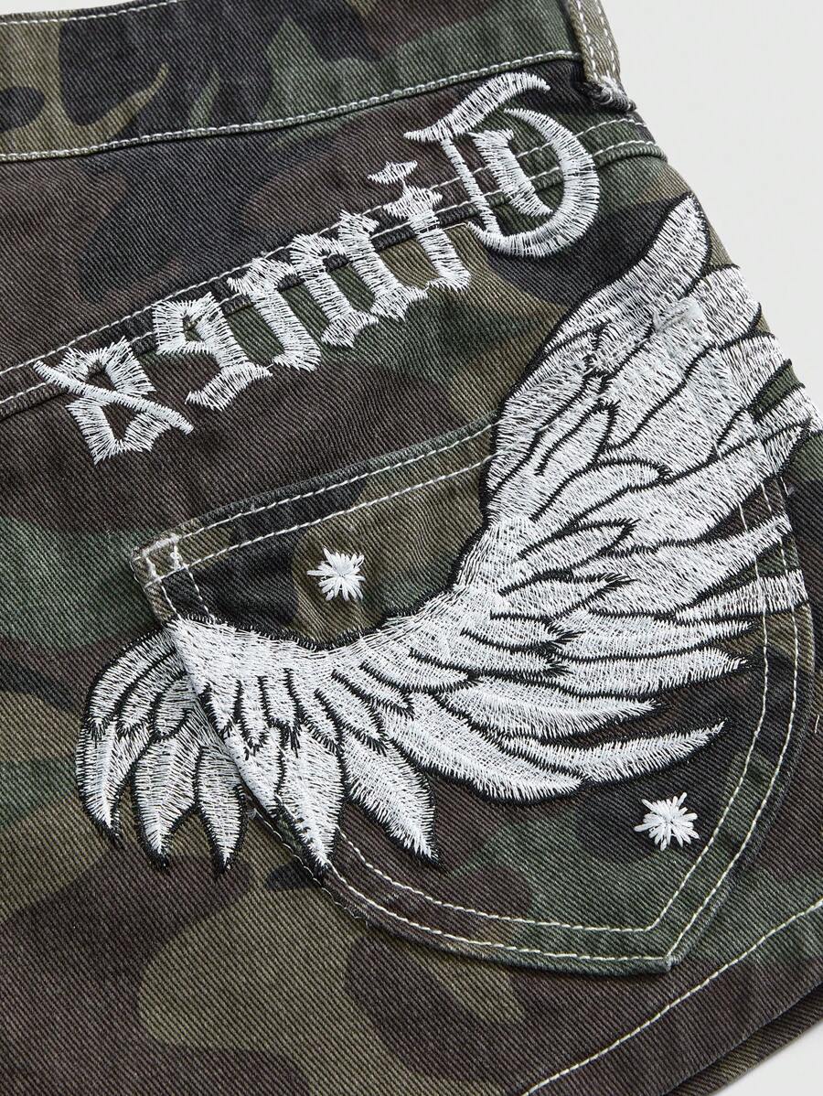 Hippie Women's Sexy Street Style Camo Print Wing Embroidery Denim Shorts