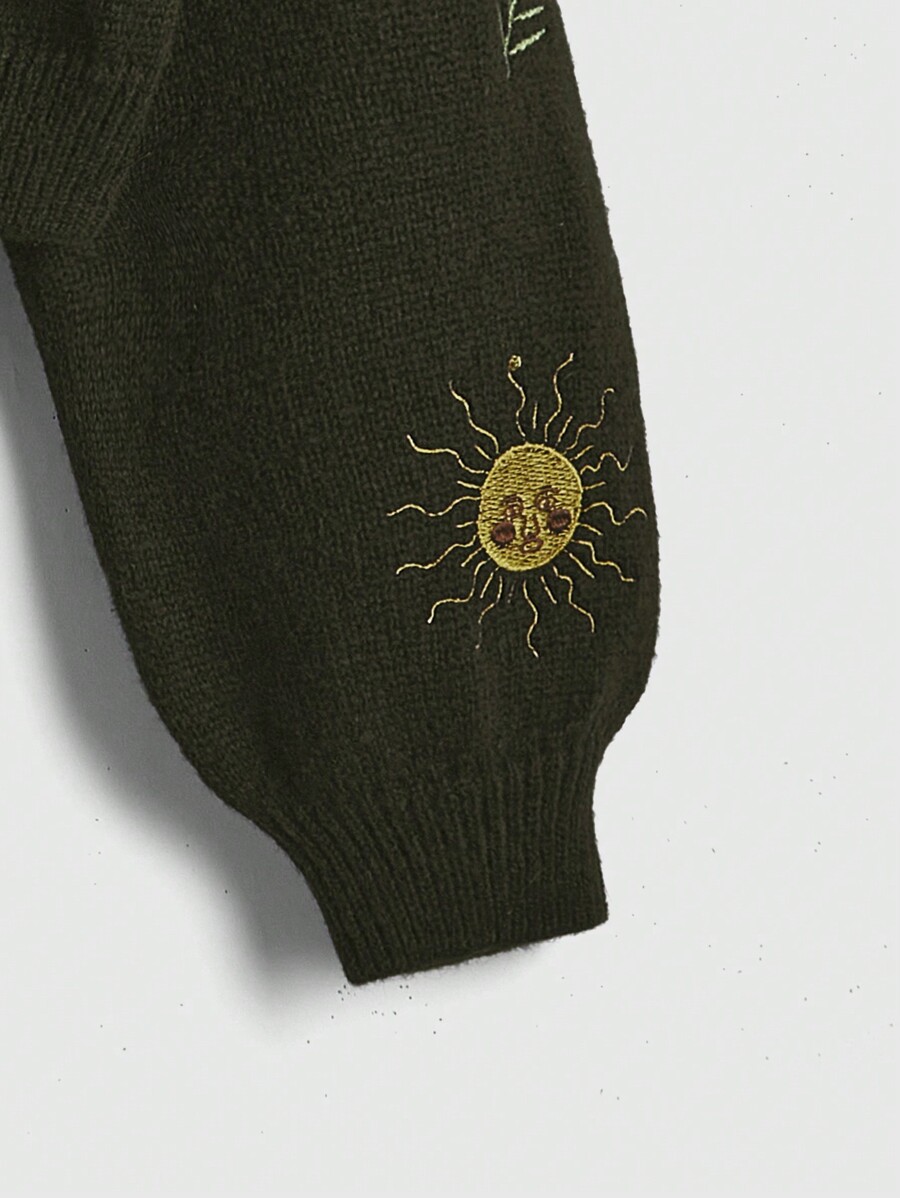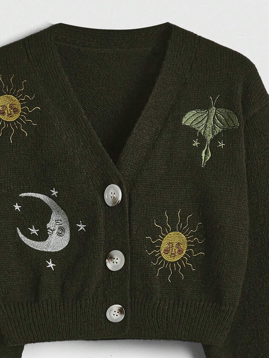 Hippie Women's Sun And Moon Embroidery Button Up Cardigan Sweater