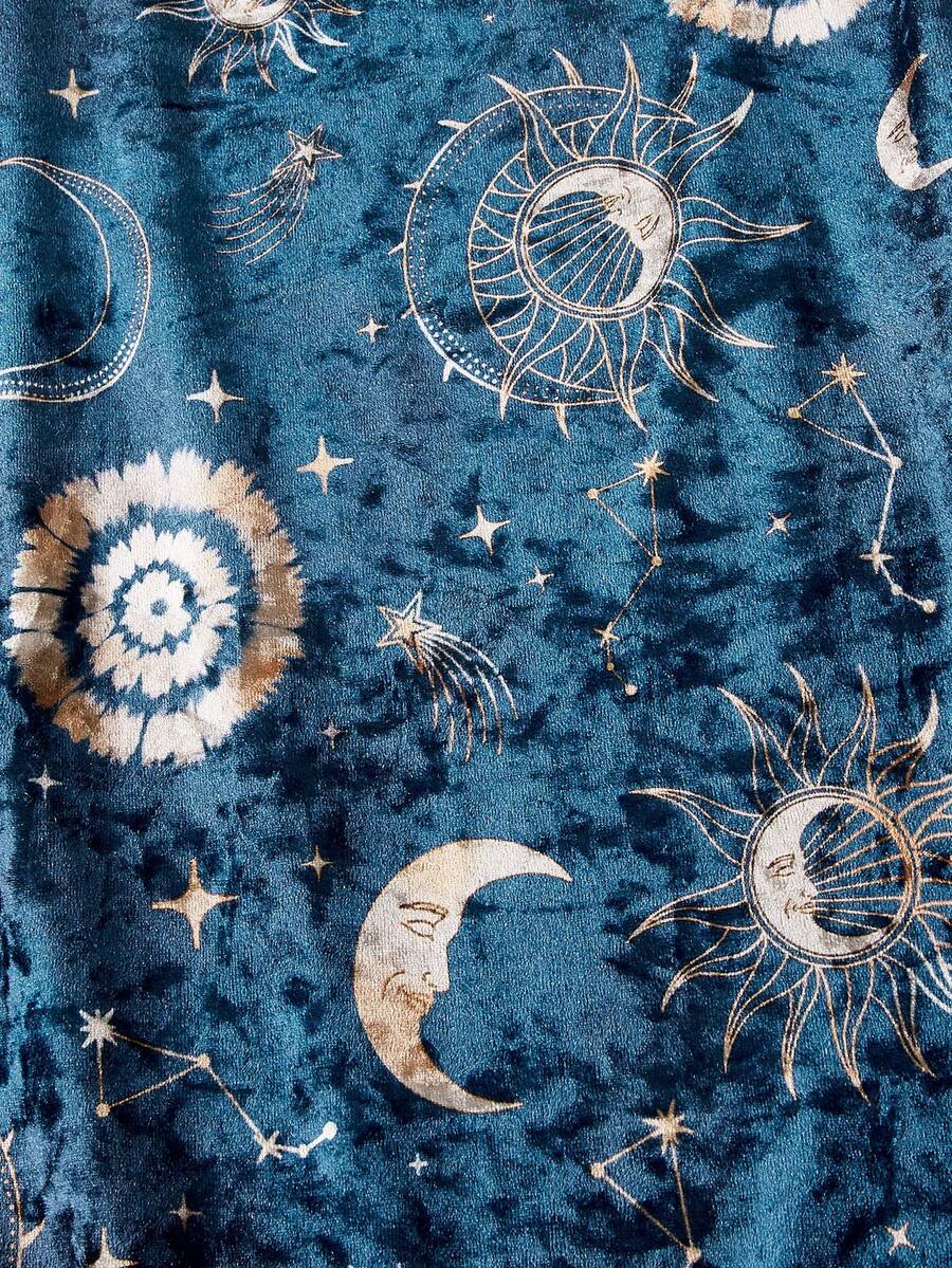 Hippie Women's Sun & Moon Printed Front Tie Bell Sleeve Dress