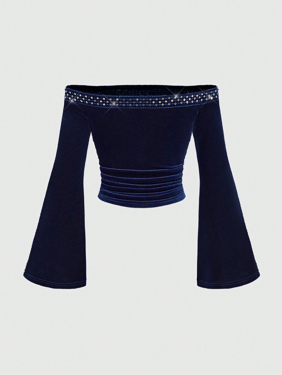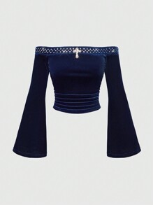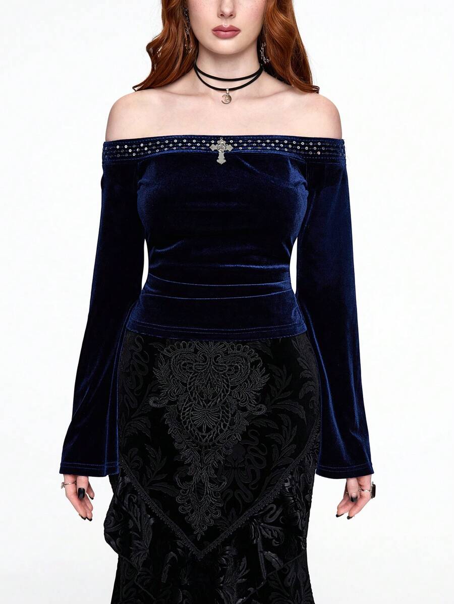 Hippie Women's Whimsgoth Witch Halloween Off-Shoulder Sequined & Velvet Blouse