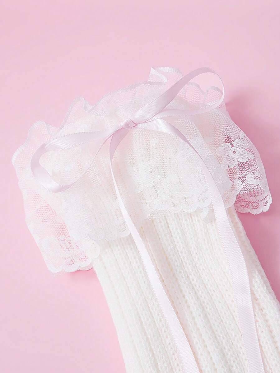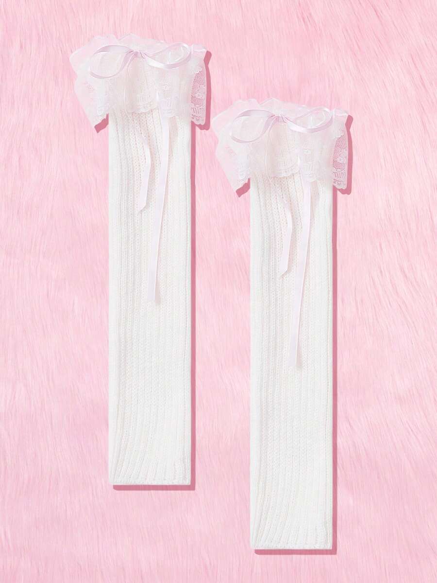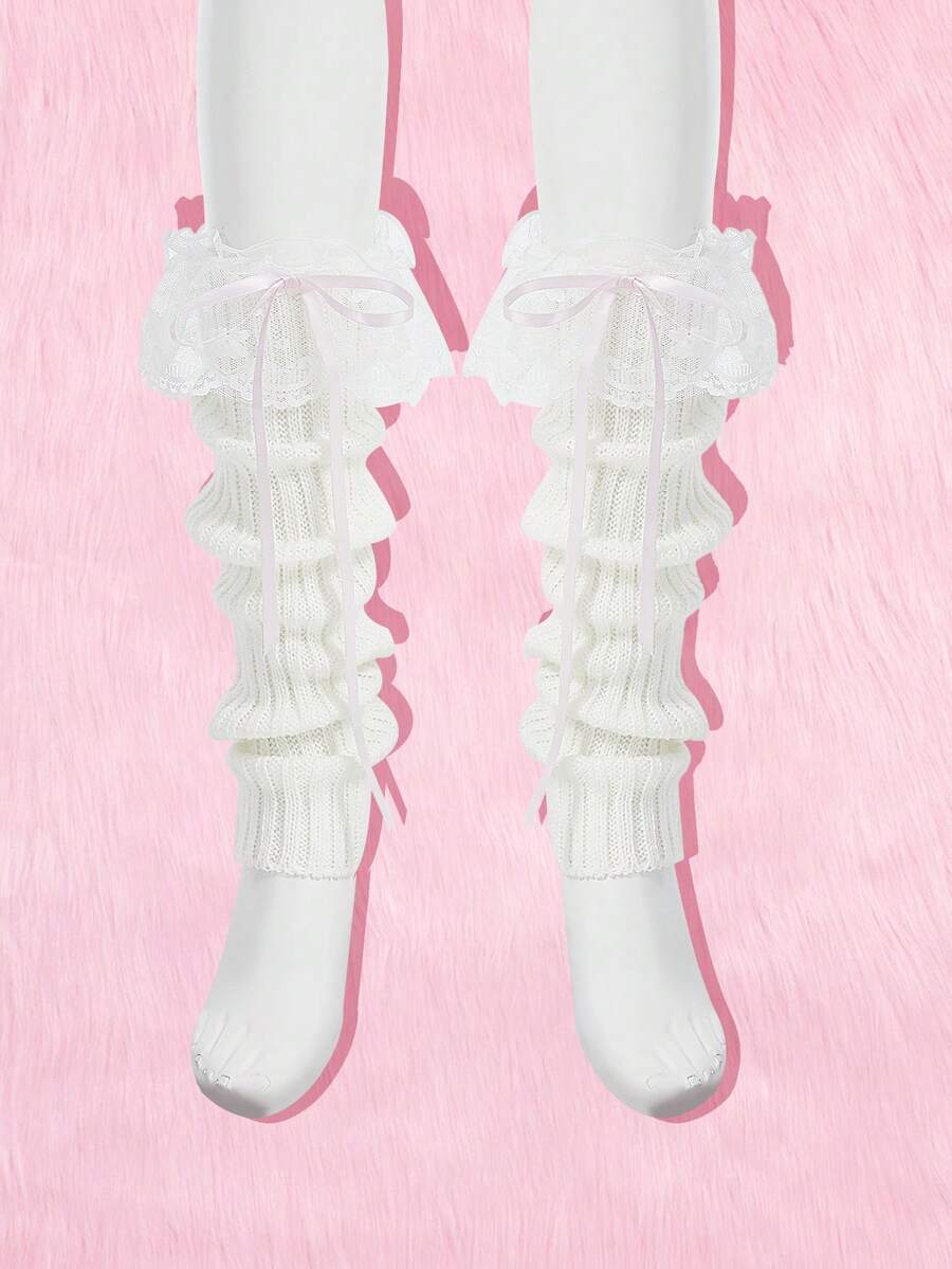 J-Fashion 1pair Women Cute Bow Decor Lace Trim Leg Warmers