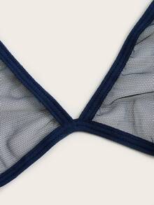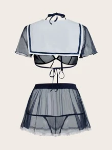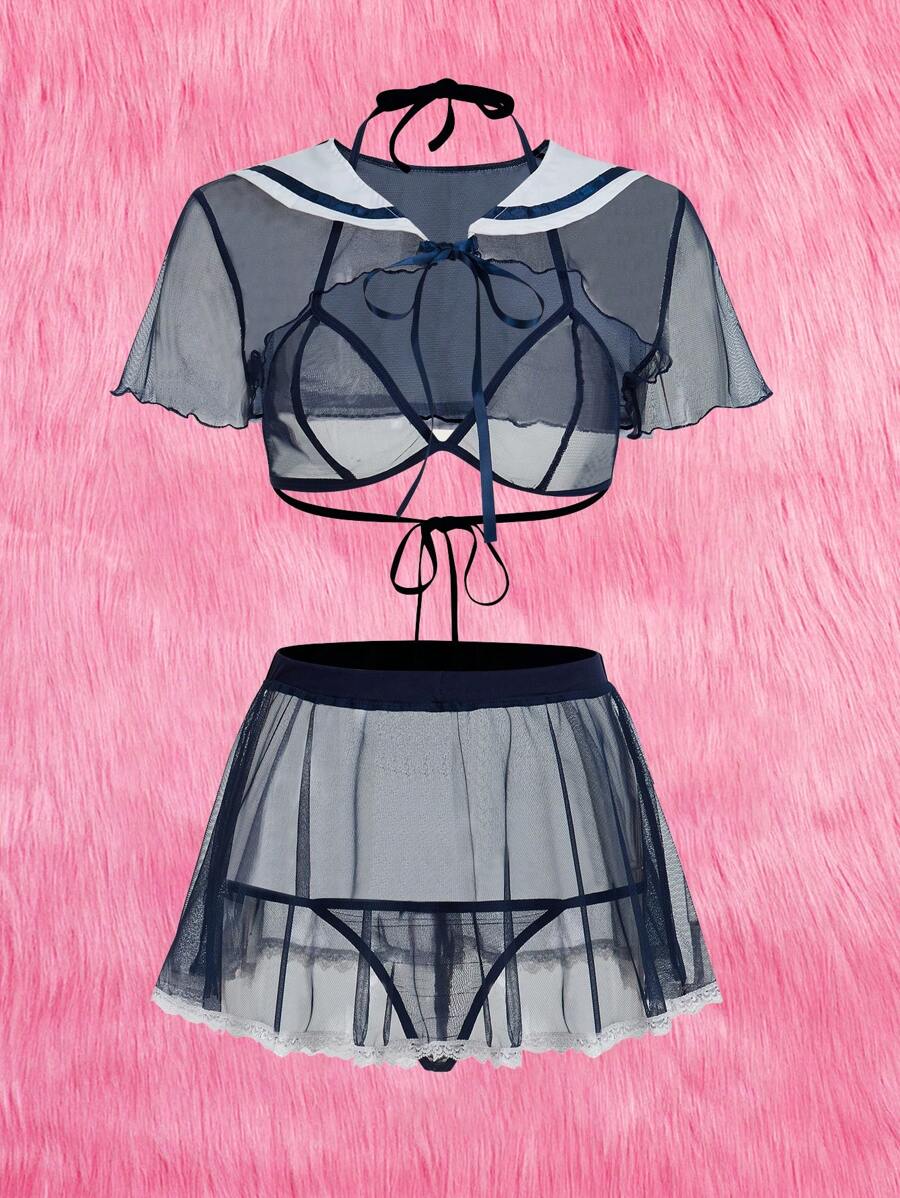 J-Fashion 4pack Contrast Lace Tie Front Mesh Lingerie Set