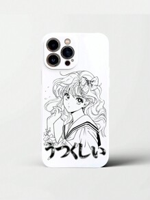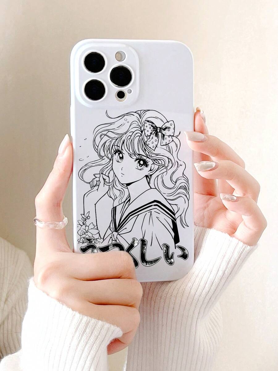 J-Fashion Anime Style Sweet Lines & Bowknot Design White Phone Case Compatible With IPhone 12/13/14 Series, Protective Cover