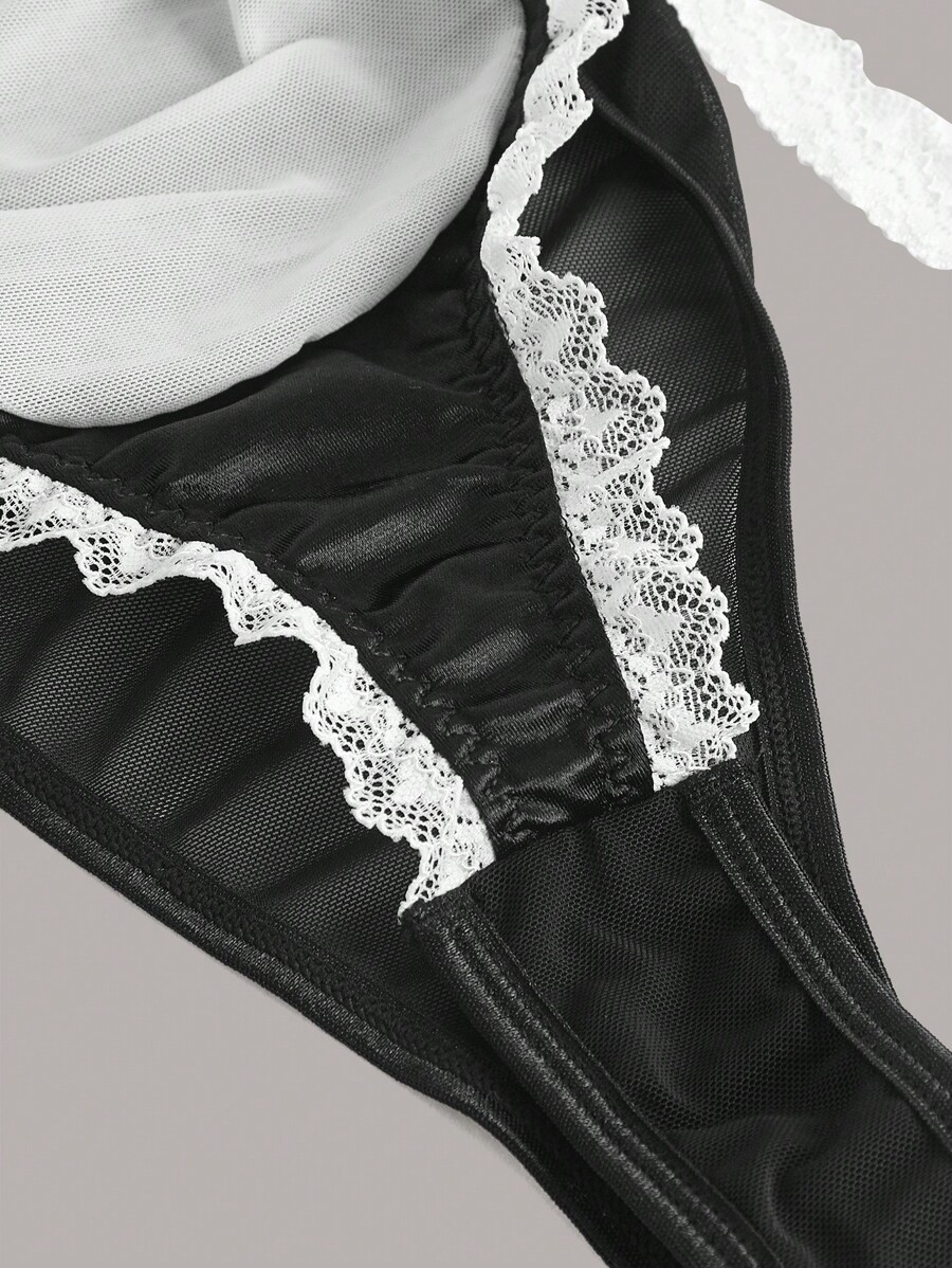 J-Fashion Contrast Lace Tie Back Satin Teddy Bodysuit