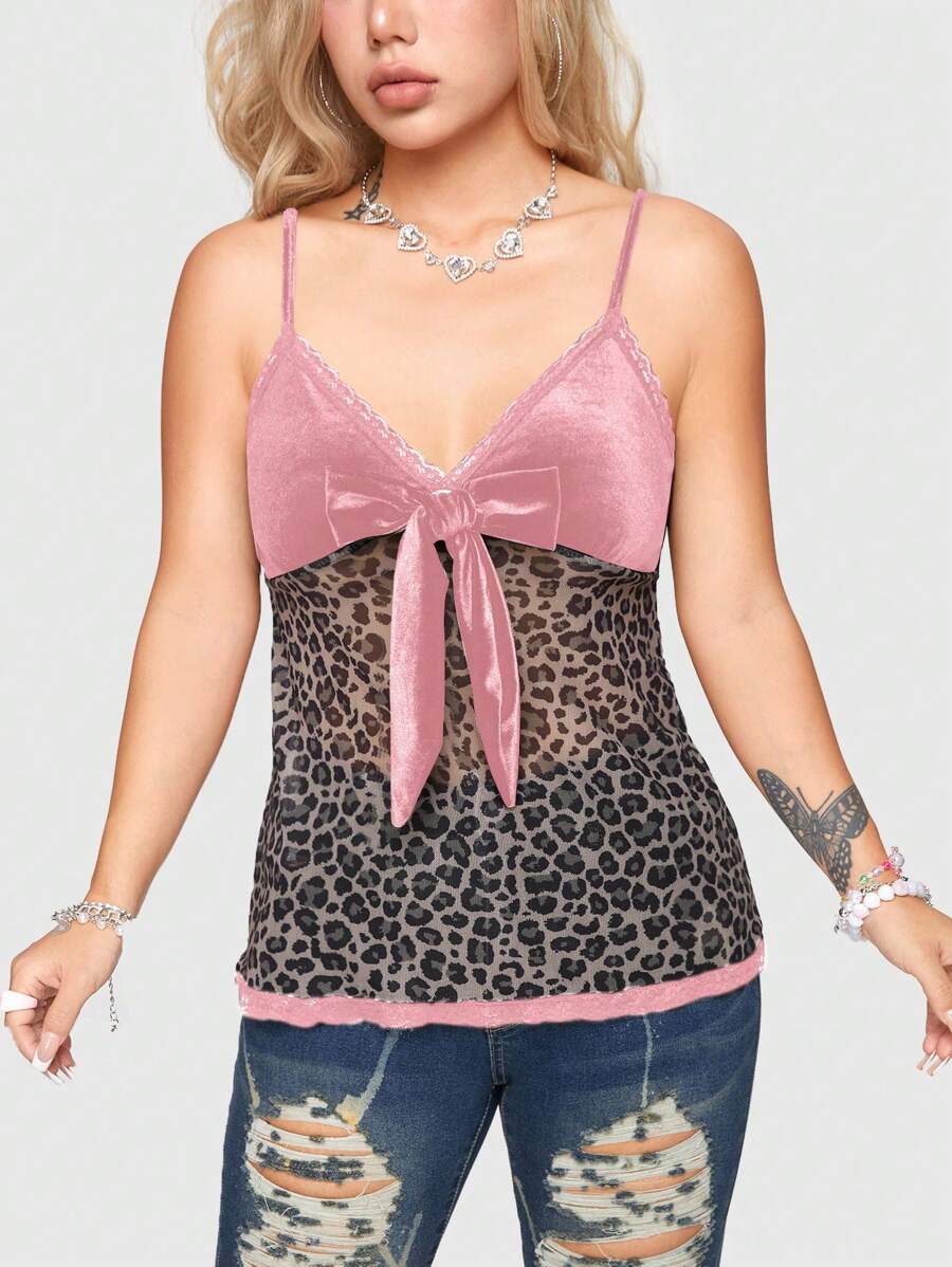 J-Fashion Fashionable Leopard Patchwork Tie-Knot Cami Top, Summer