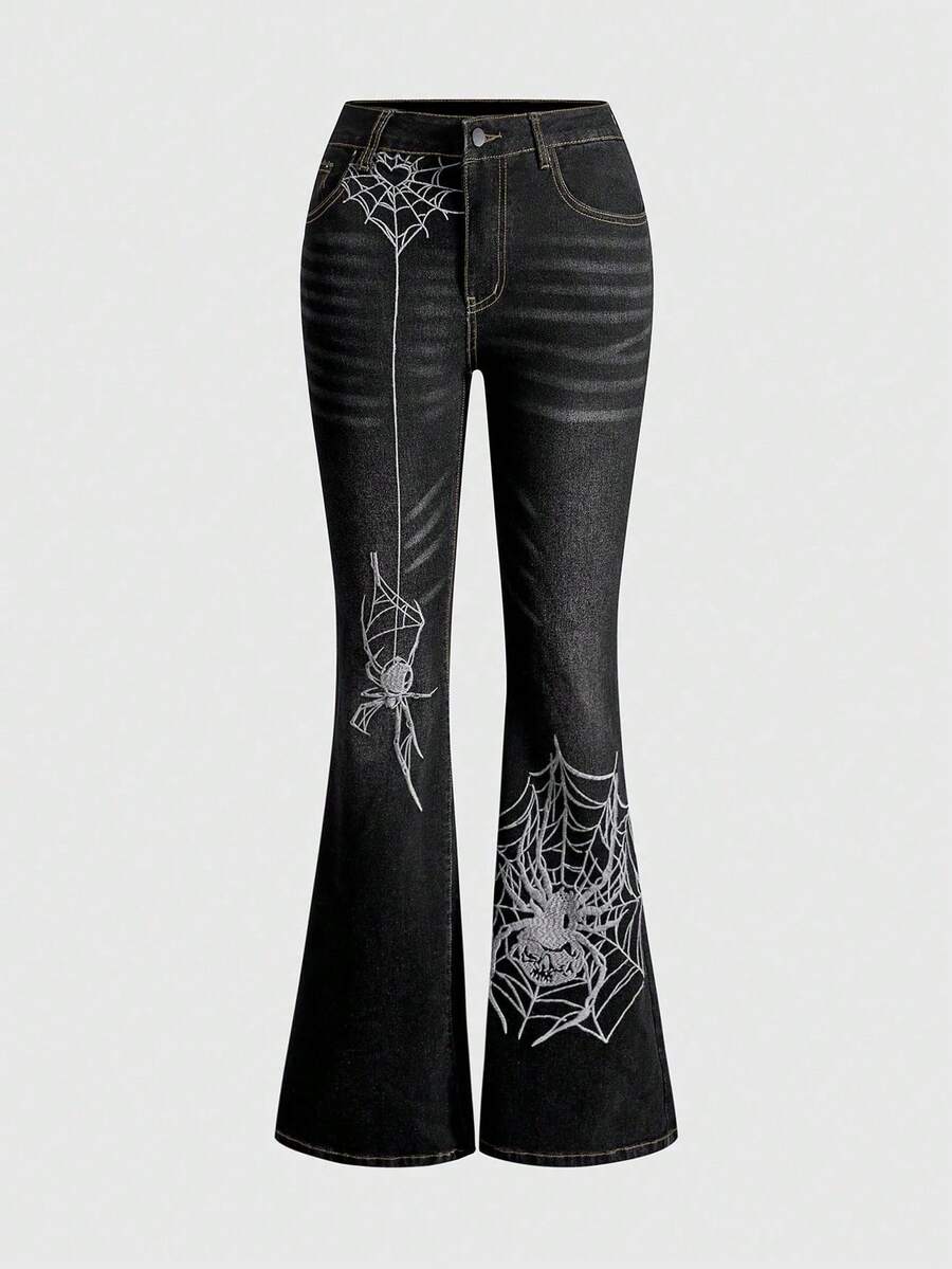 J-Fashion Silver Spider Embroidery Retro Sexy Women's Jeans