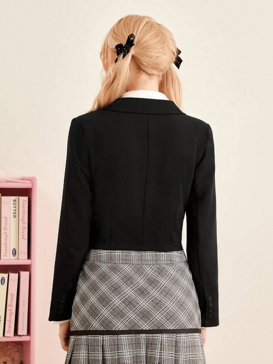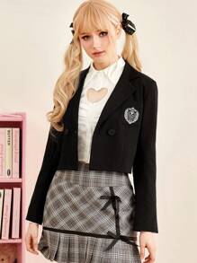 J-Fashion Star & Wings Embroidery Pocket Patched Double Button Blazer