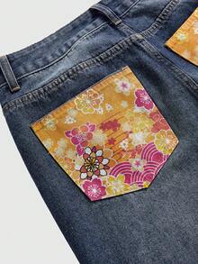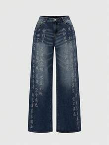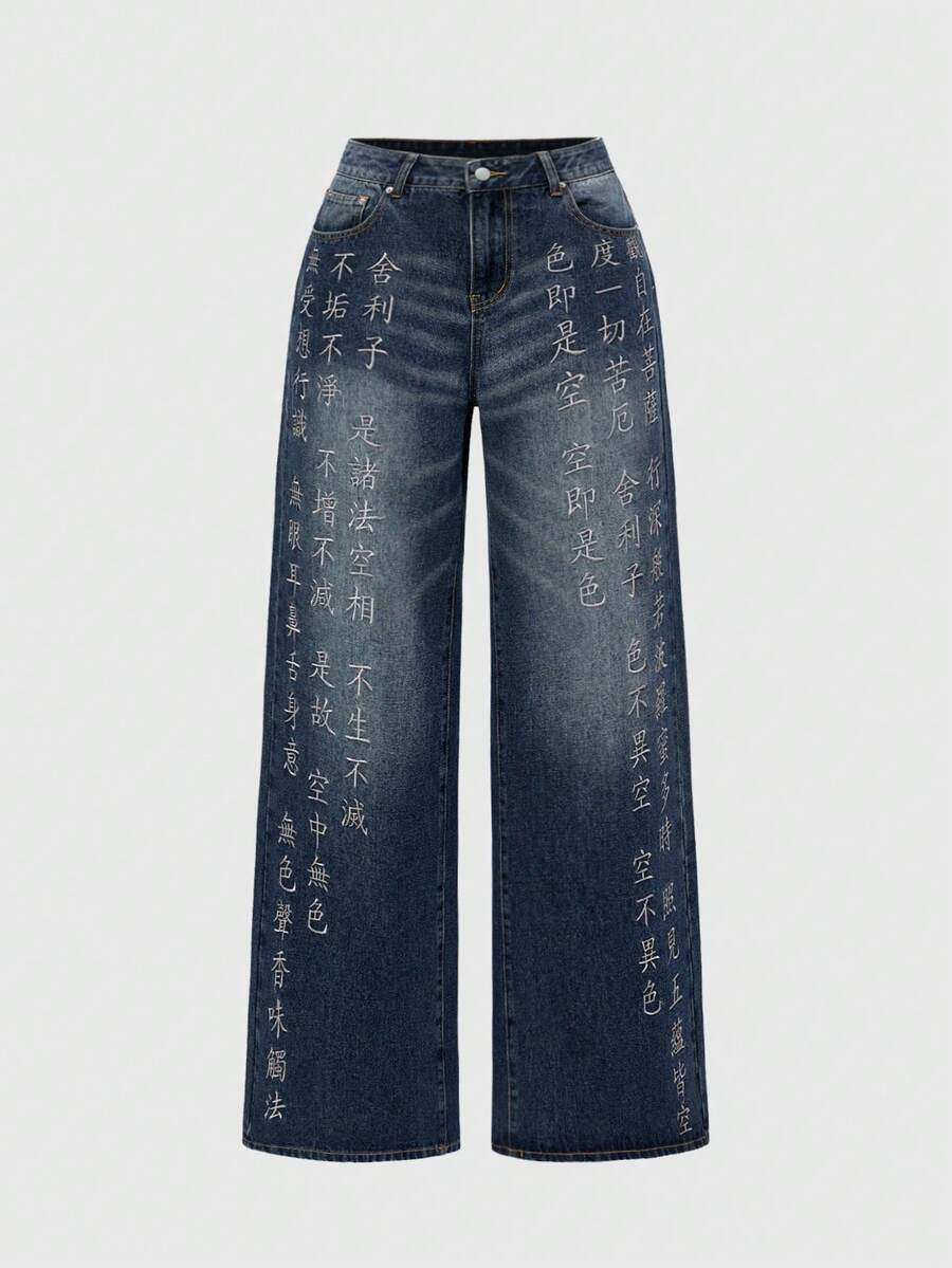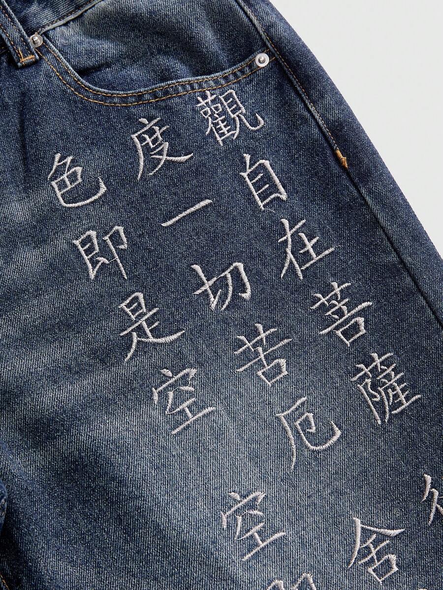 J-Fashion Subculture Autumn/Winter New Chinese Style Chinese Character Print & Embroidery Retro Low-Waist Women Low Waist Jeans