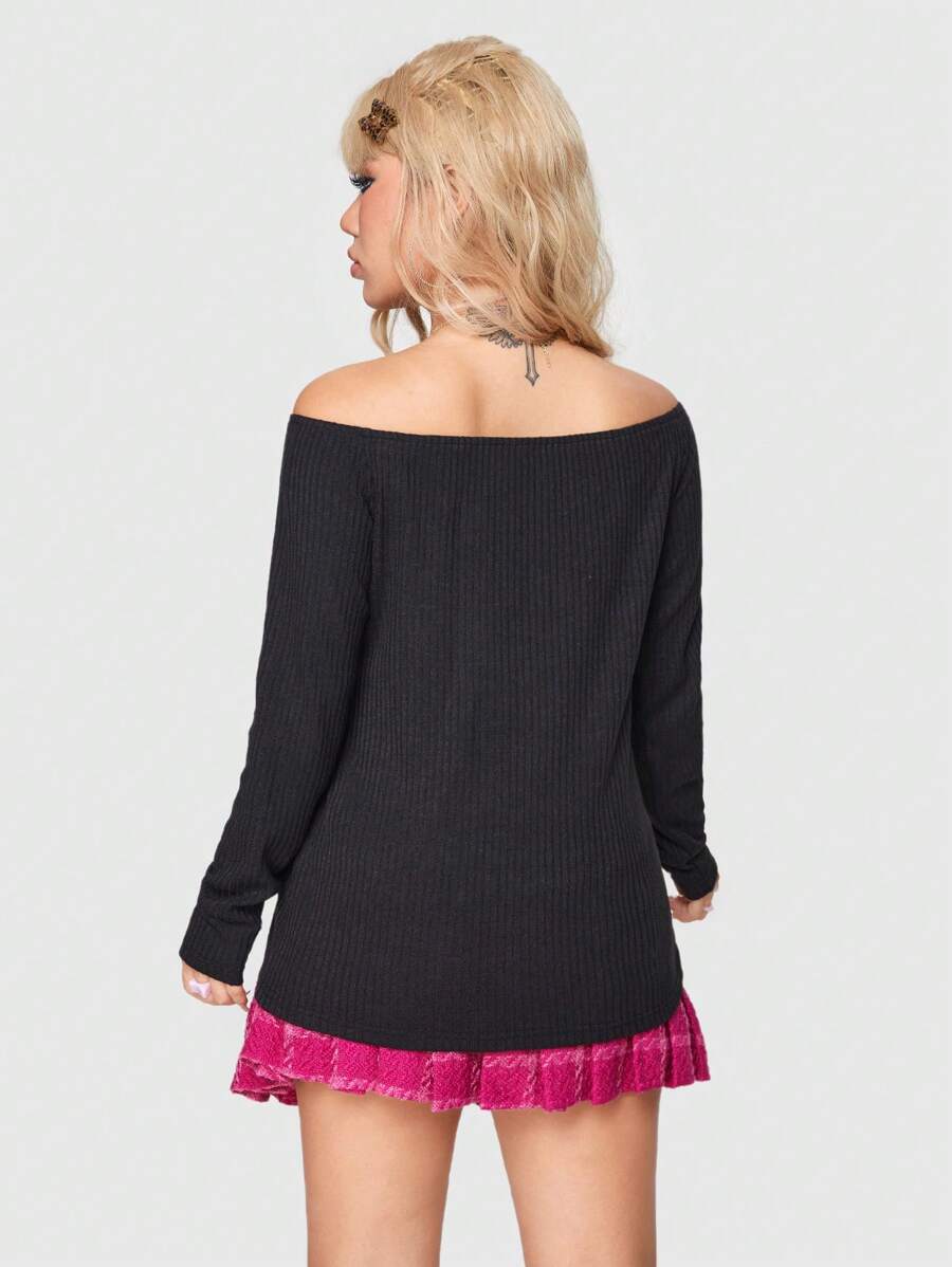 J-Fashion Women's Gyaru Leopard Cross Print Off Shoulder T-Shirt