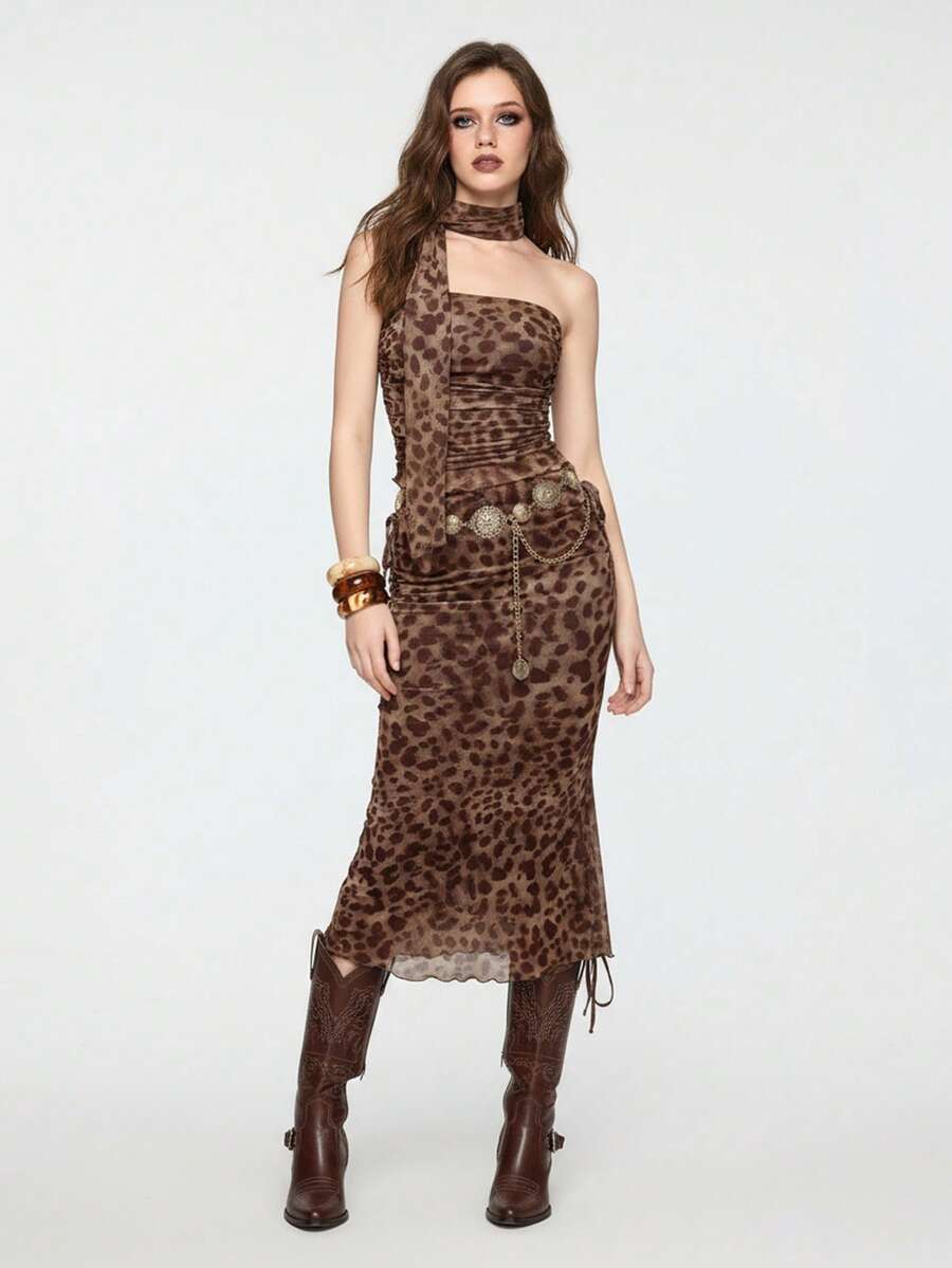 J-Fashion Women's Leopard Print Bow Fashion Skirt