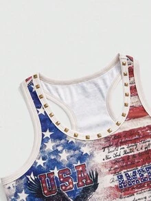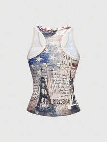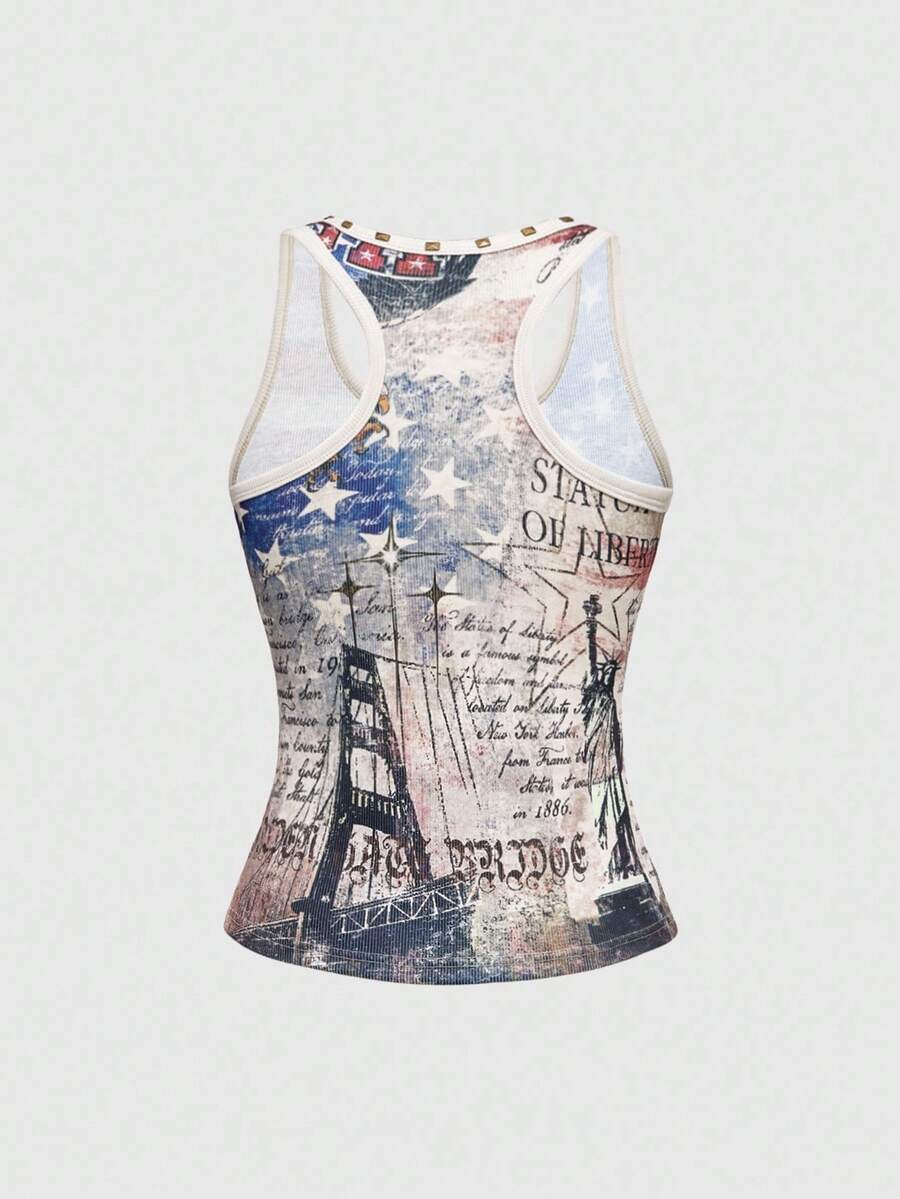 J-Fashion Y2K Retro American USA Flag Eagle Building English Graphic Women Tank Top