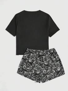 JRart Skull and Letter Graphic Tee & Shorts PJ Set
