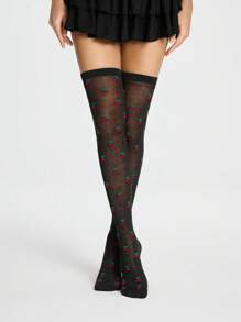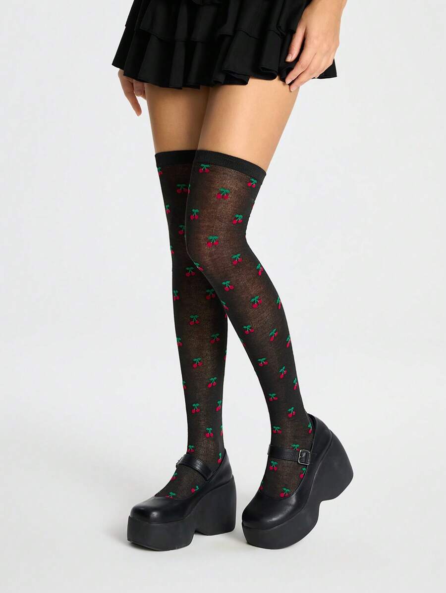 Kawaii 1 Pair Cute Dark Cherry Over-The-Knee Socks