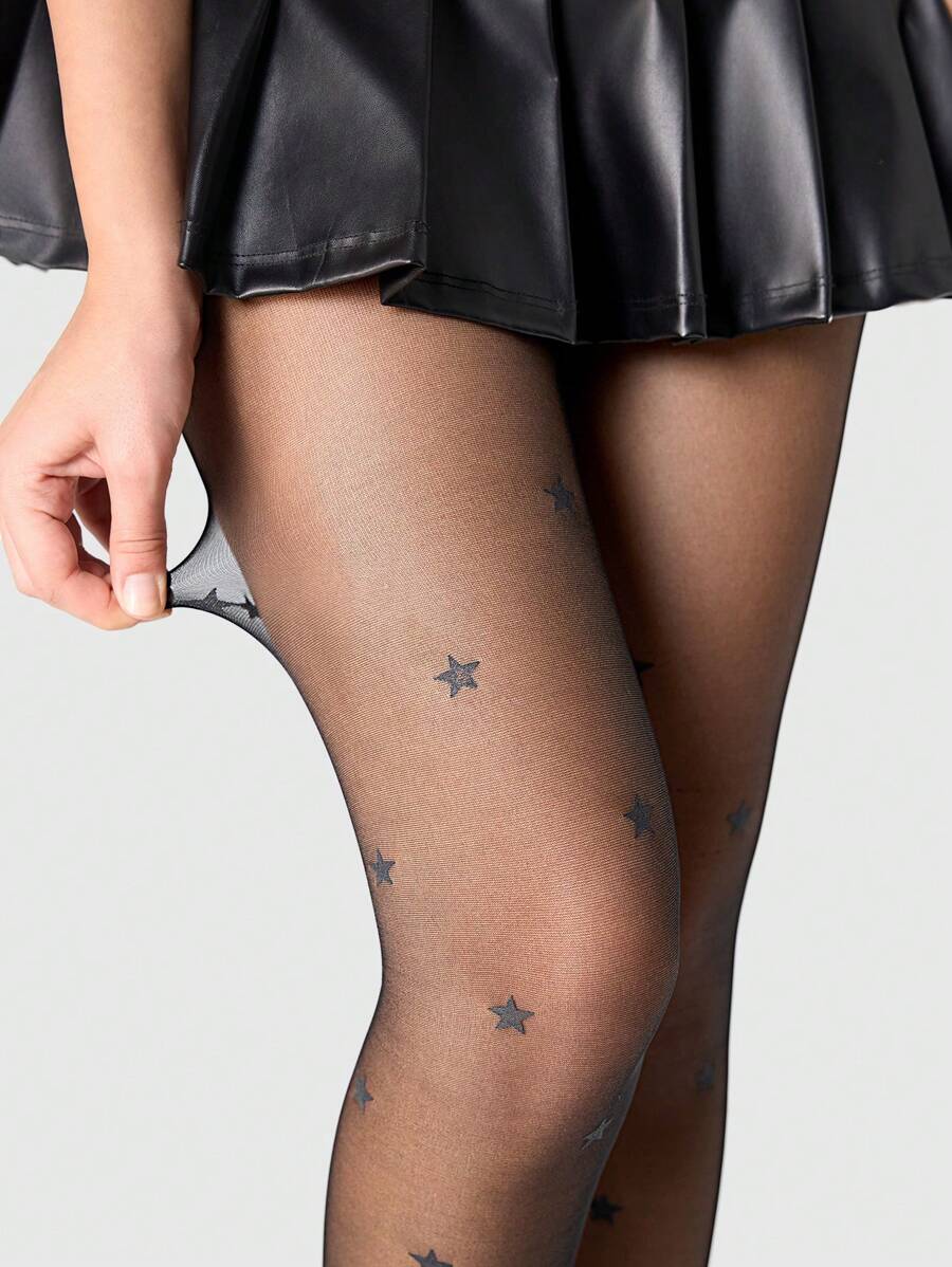 Kawaii 1 Pair Star Print Stockings, Sexy Retro Printed Tights, Elastic Leg Slimming Hosiery, Thin Black Pantyhose