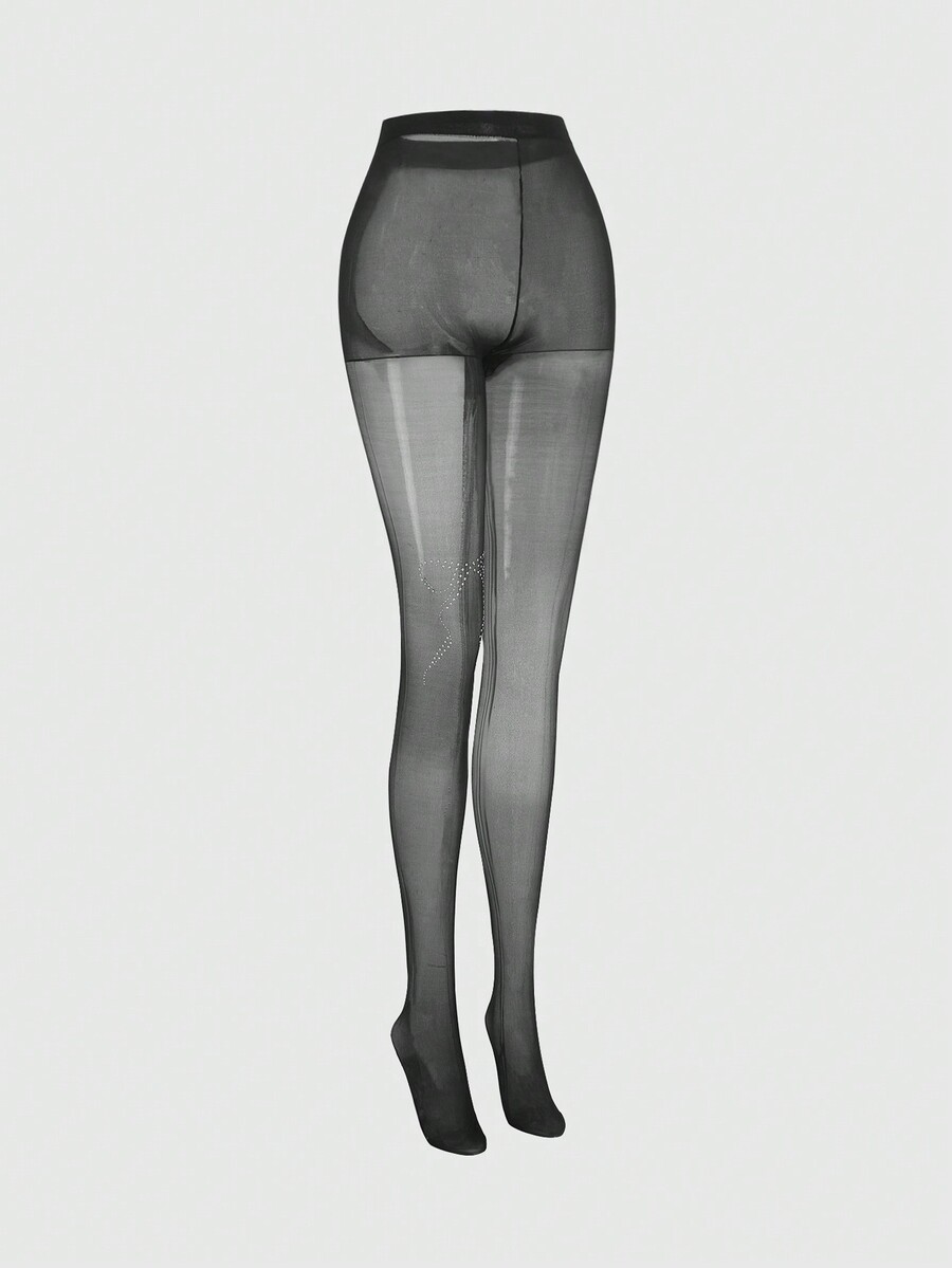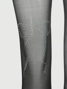Kawaii 1 Pair Women's White Bow Rhinestone Black Stockings, All Season