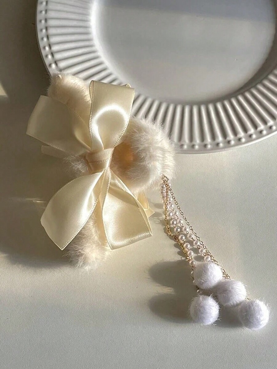 Kawaii 1 Pc Plush Hair Clip With Bow Knot Decoration