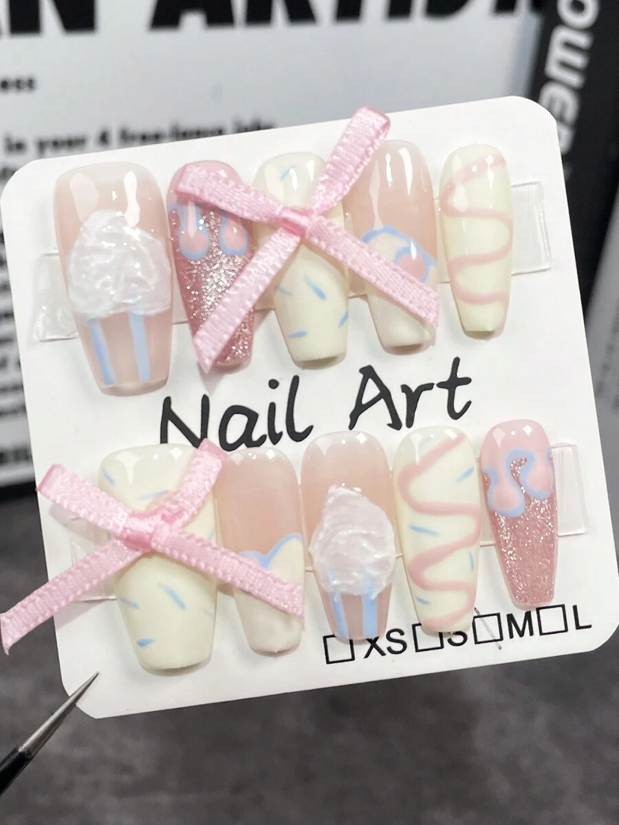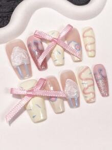 Kawaii 10pcs Cute And Removable Full Cover Nail Wrap With Bow Decoration