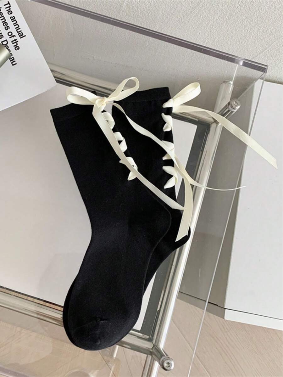 Kawaii 1pair Bowknot Ribbon Mid-calf Socks
