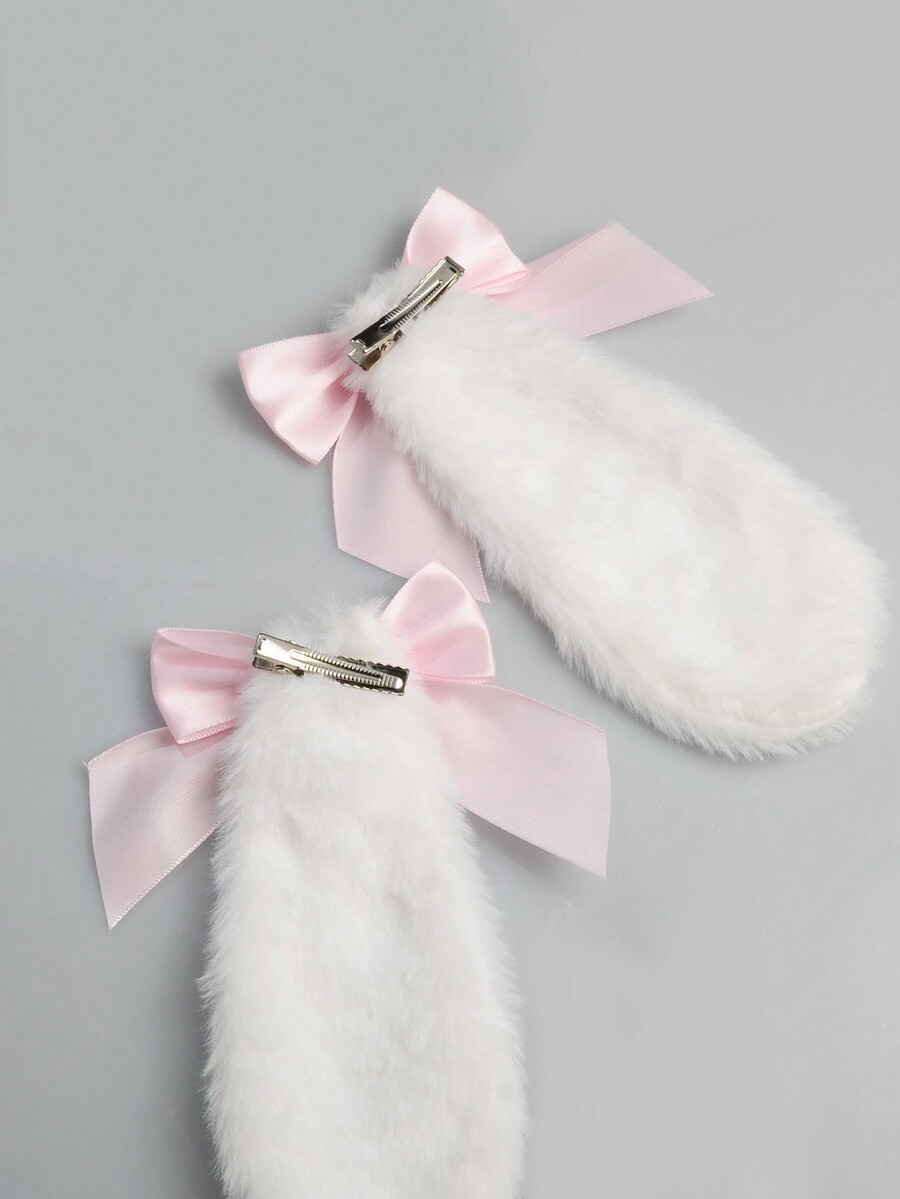 Kawaii 1pair Cute Bunny Ear & Bowknot Design Hair Clip