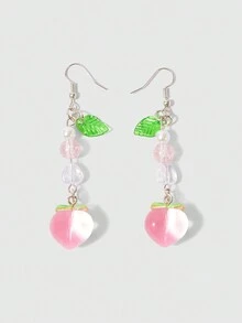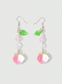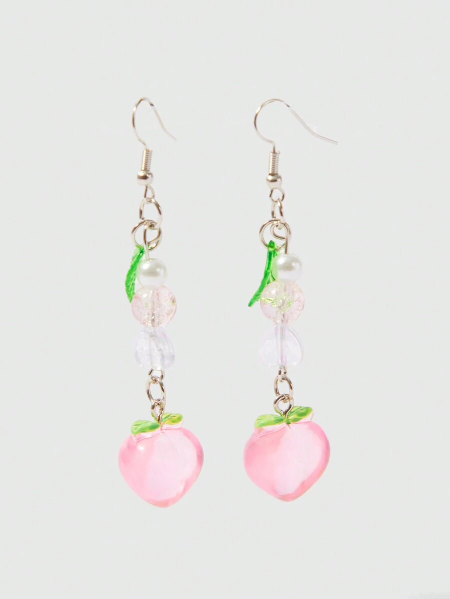 Kawaii 1pair Cute Pink Heart Shaped Earrings, Suitable For Student Back To School Gift And Daily Wear For Women
