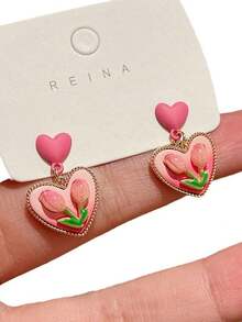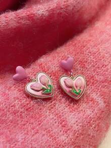 Kawaii 1pair Heart & Tulip Shaped Dangle Earrings