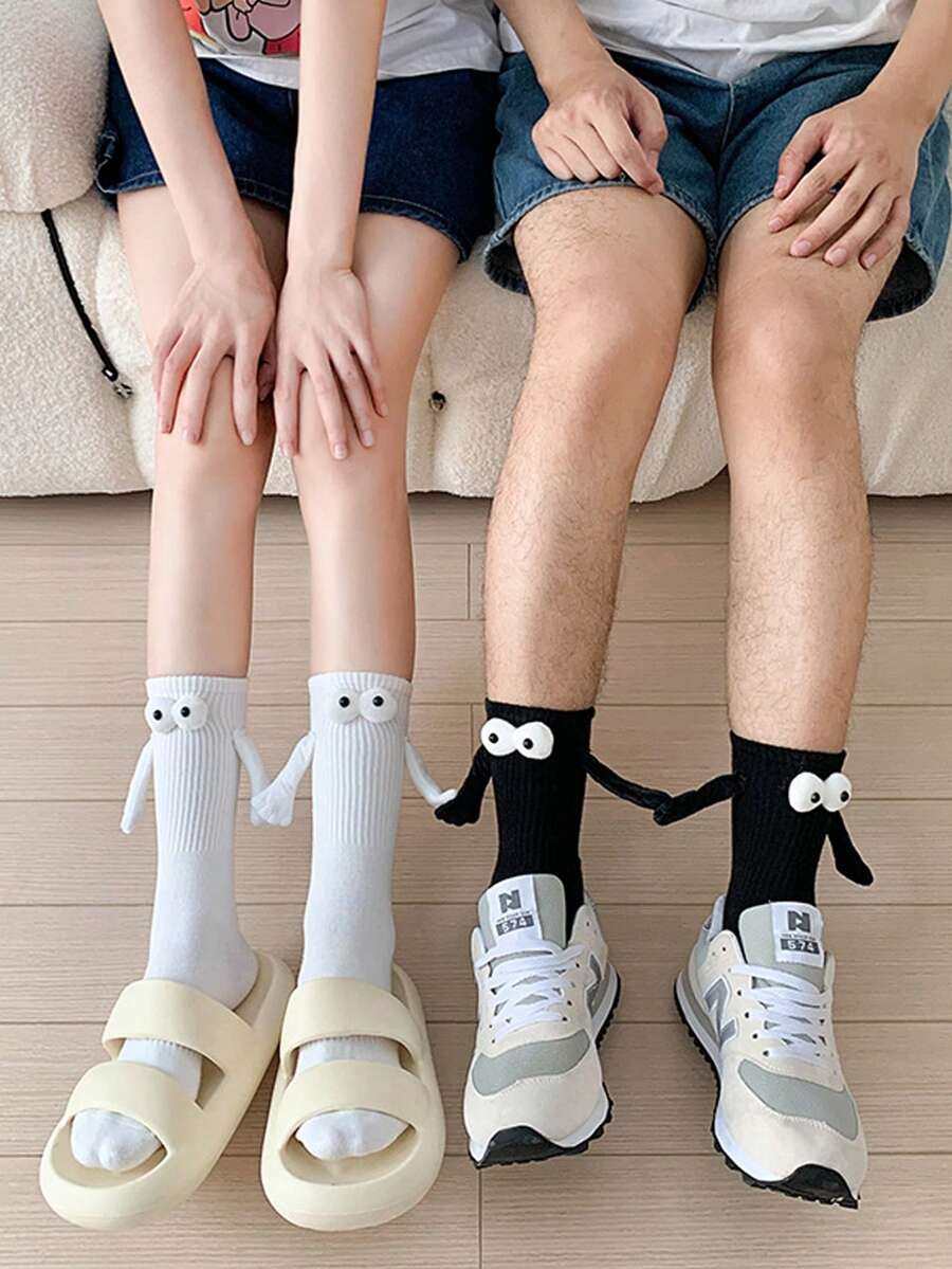 Kawaii 1pair Women Eye Decor Magnetic Crew Socks