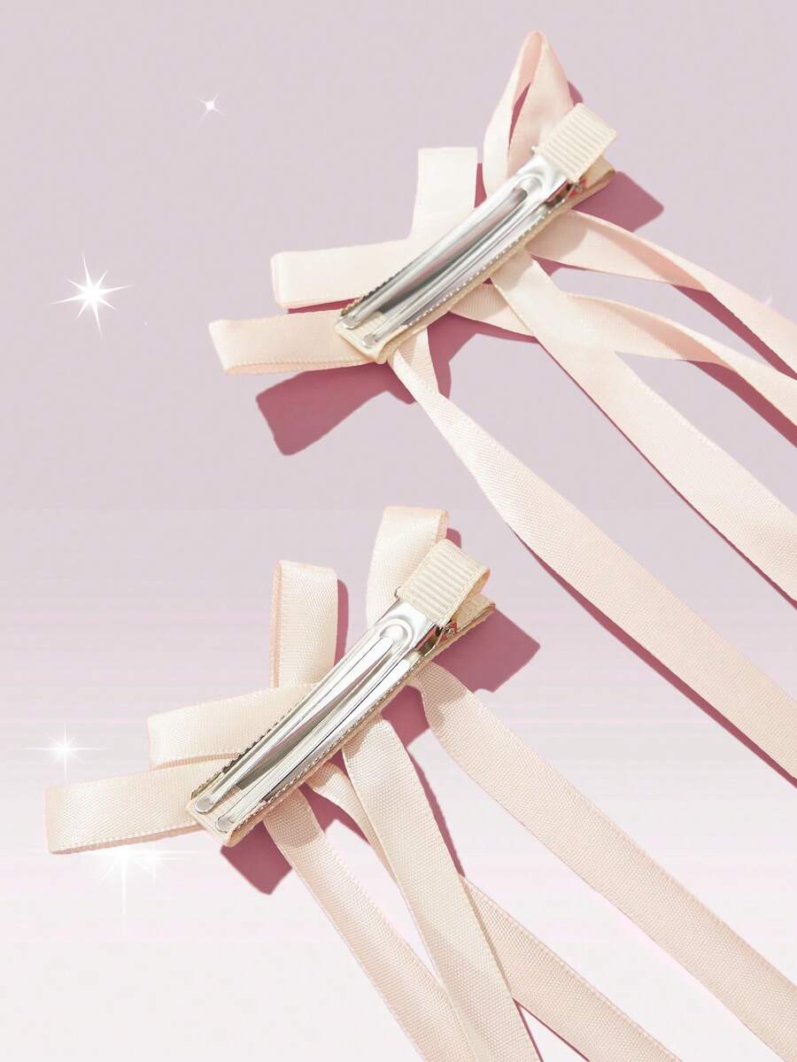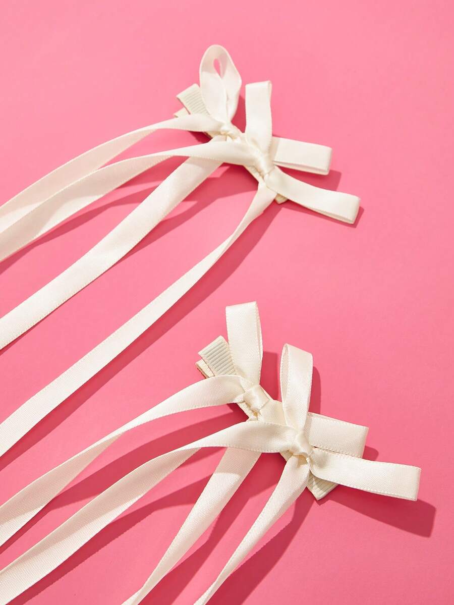 Kawaii 1pair Women Solid Bow Decor Hair Clip