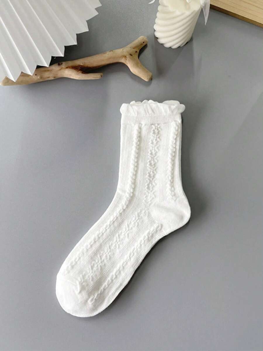 Kawaii 1pair Women Solid Frill Trim Cute Crew Socks