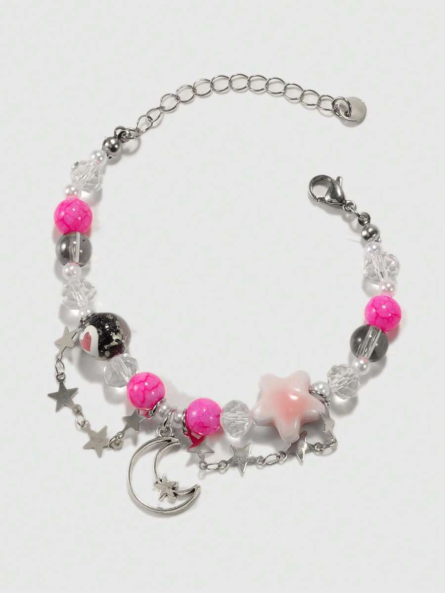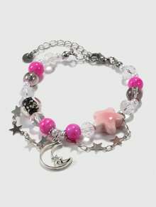 Kawaii 1pc Cute Star & Moon Beaded Bracelet