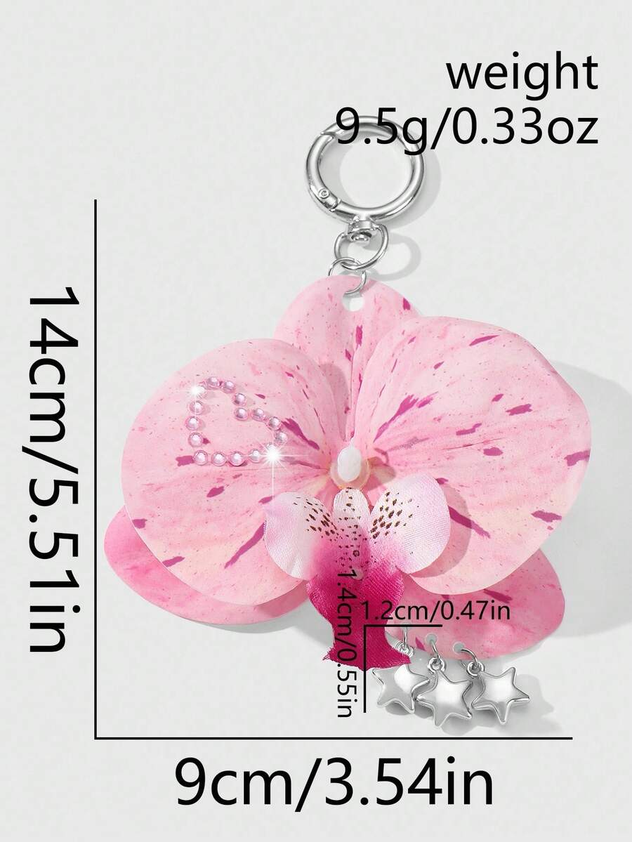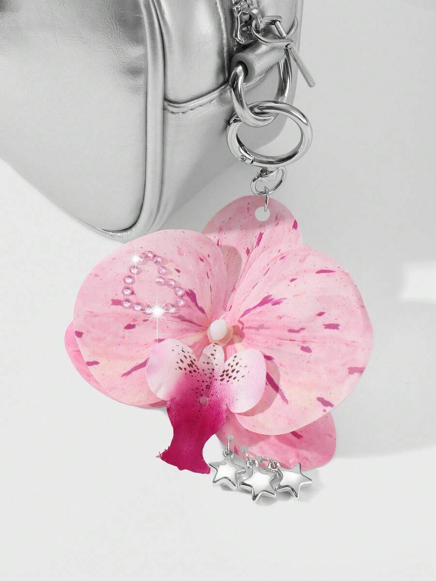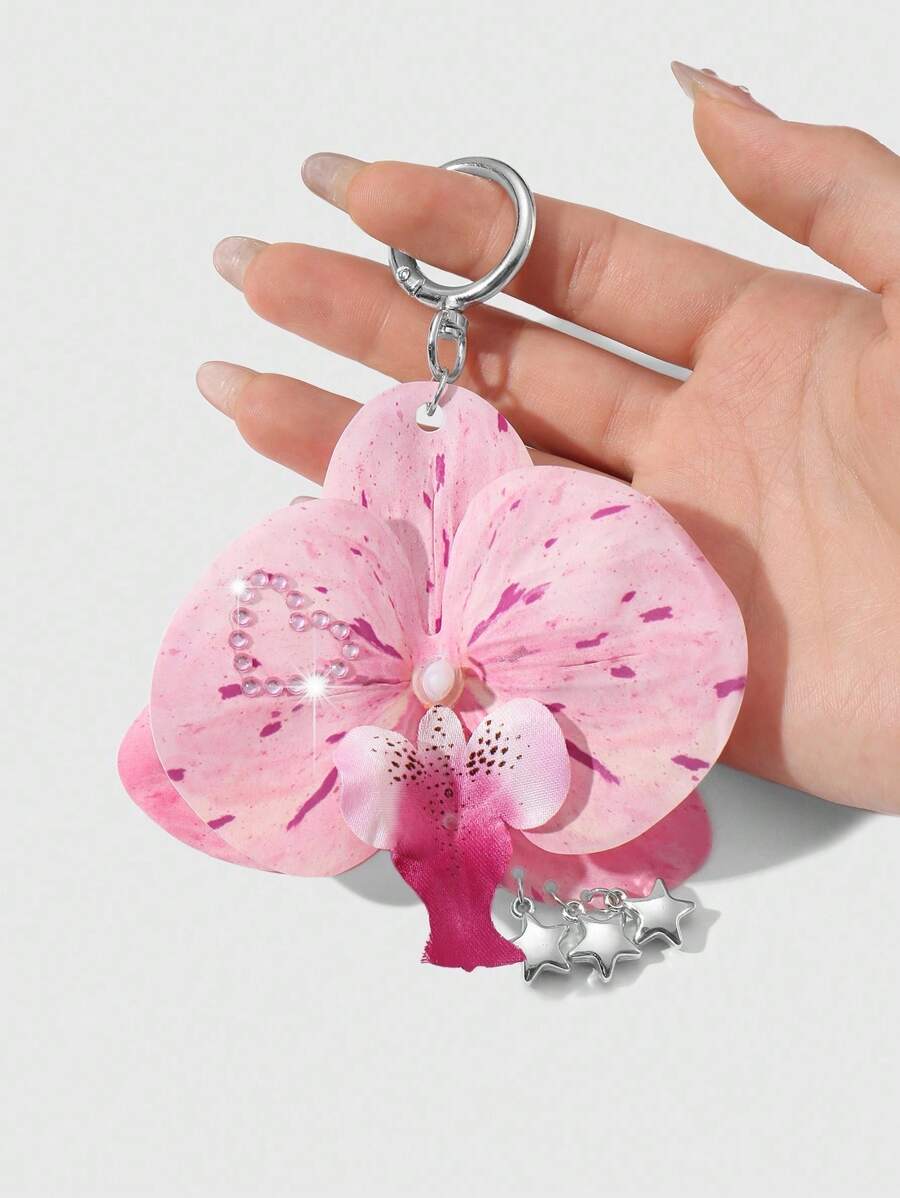 Kawaii 1pc Elegant & Minimalist Versatile Acrylic Rhinestone Butterfly Orchid, Heart, Star Charm Keychain/Bag Pendant, Fashionable Accessory Gift For Women