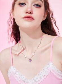 Kawaii 1pc Fashion Iron Alloy Heart & Star Decor Necklace For Women For Daily Decoration