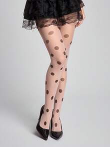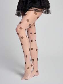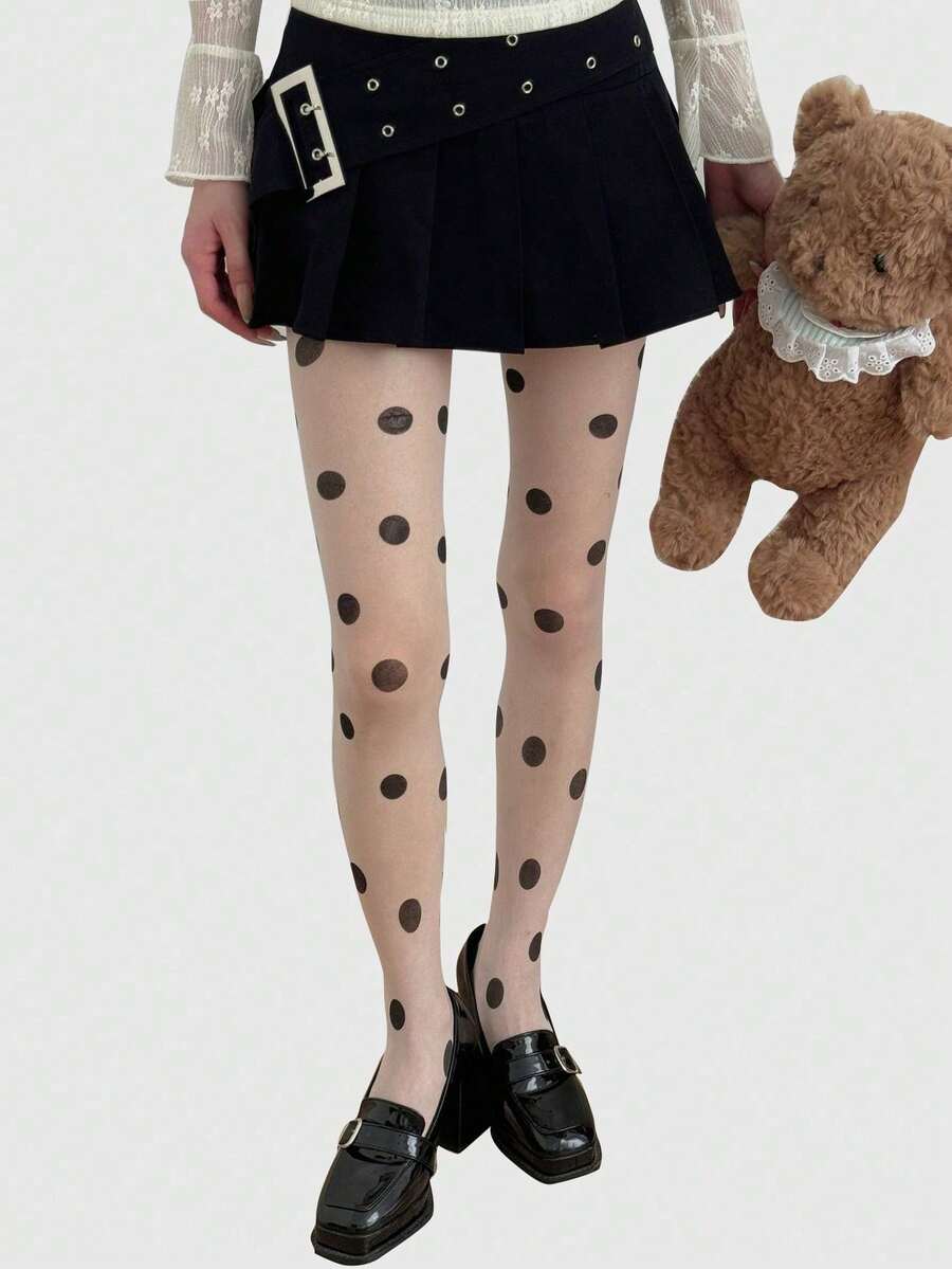 Kawaii 1pc Fashionable Polka Dot Sheer White Stockings, Women's Summer Thin Pantyhose/Tights/Leggings