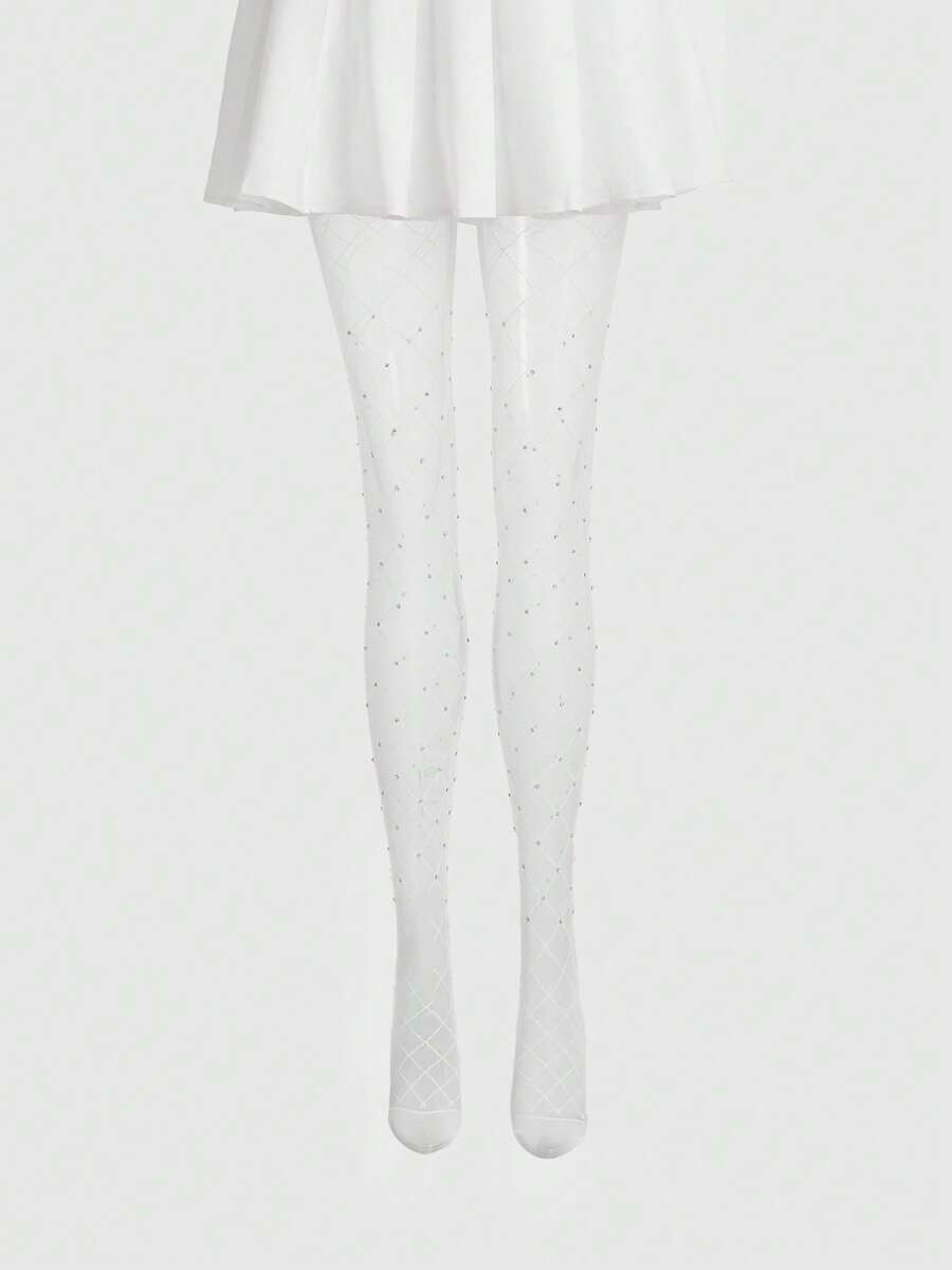 Kawaii 1pc Women Rhinestone Decor Plaid Tights