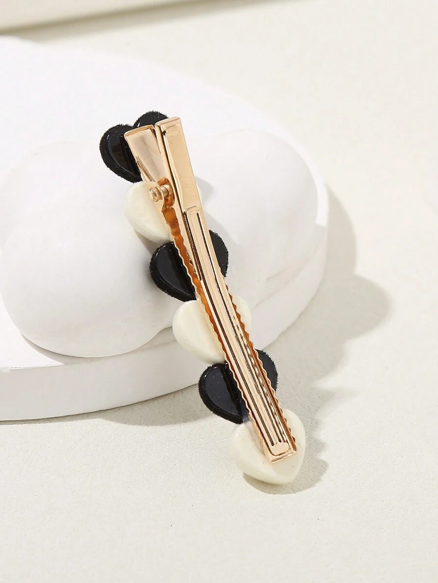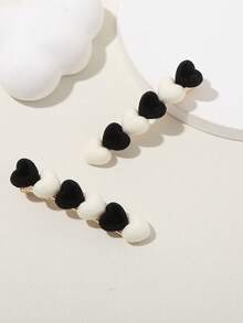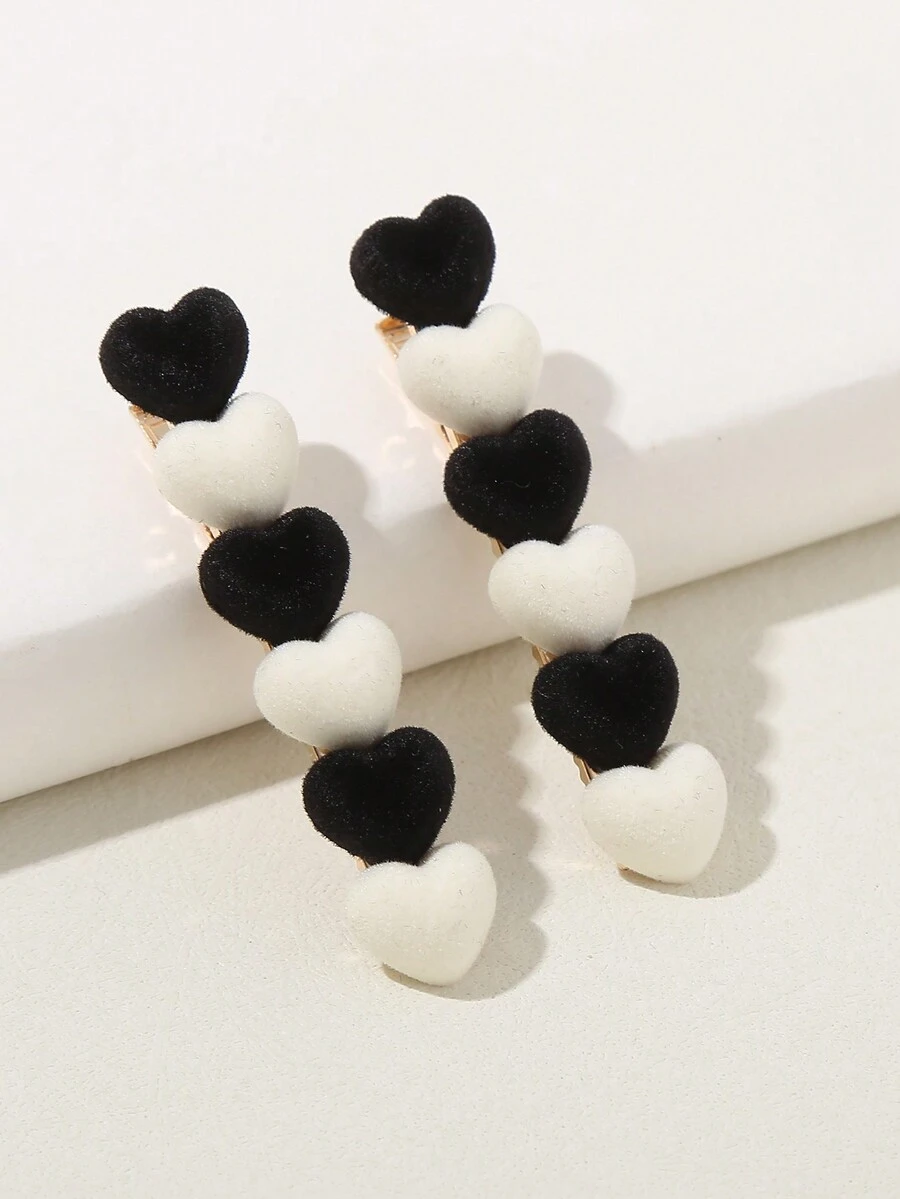 Kawaii 2pcs Black&white Sweet Heart-shaped Hair Clip For Side Parting